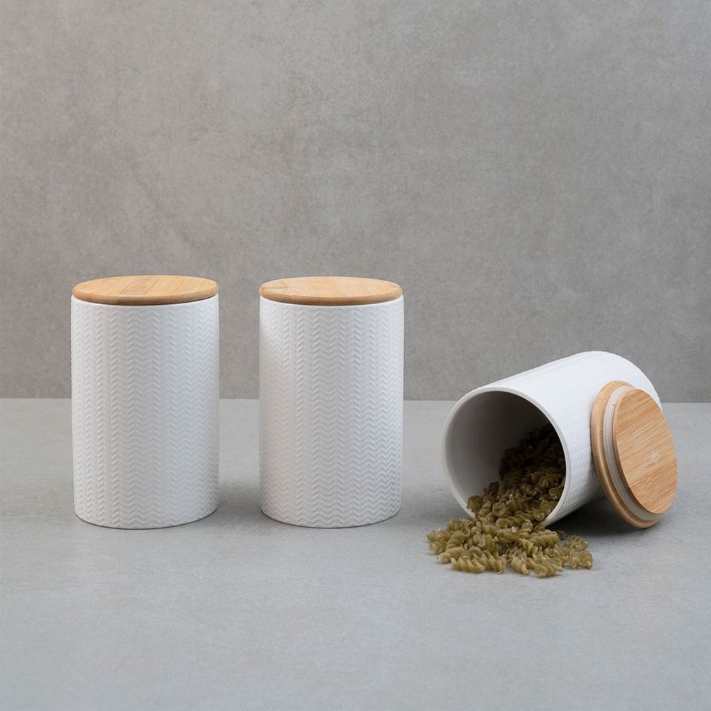Kit 3 Potes Dolomita com Tampa de Bambu Zig Zag 1,5l - Oikos