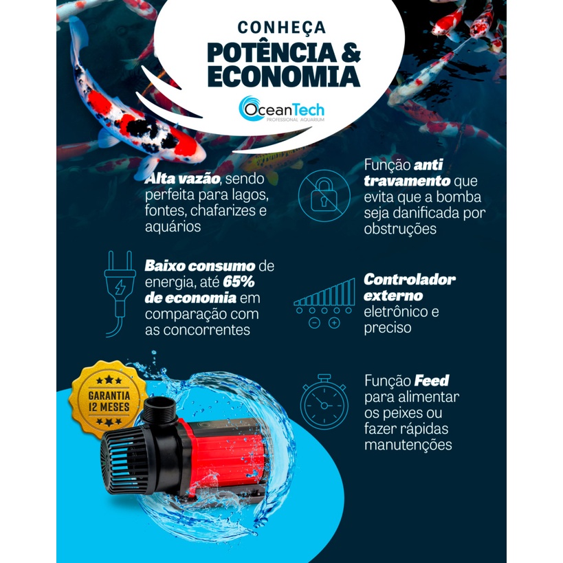 Bomba Submersa Eletrônica Ac 9000 L/h Ocean Tech Lago Aquari