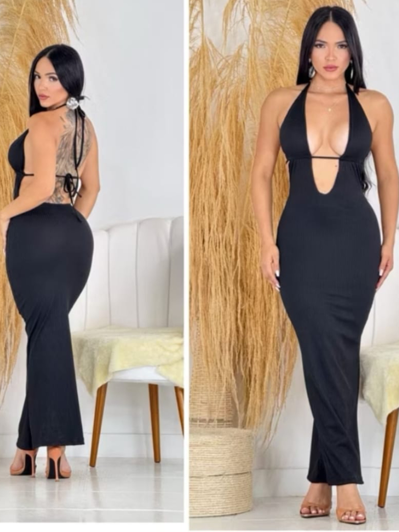 vestido feminino longo com decote na frente e com bojo sexy canelado envio imediato 📦