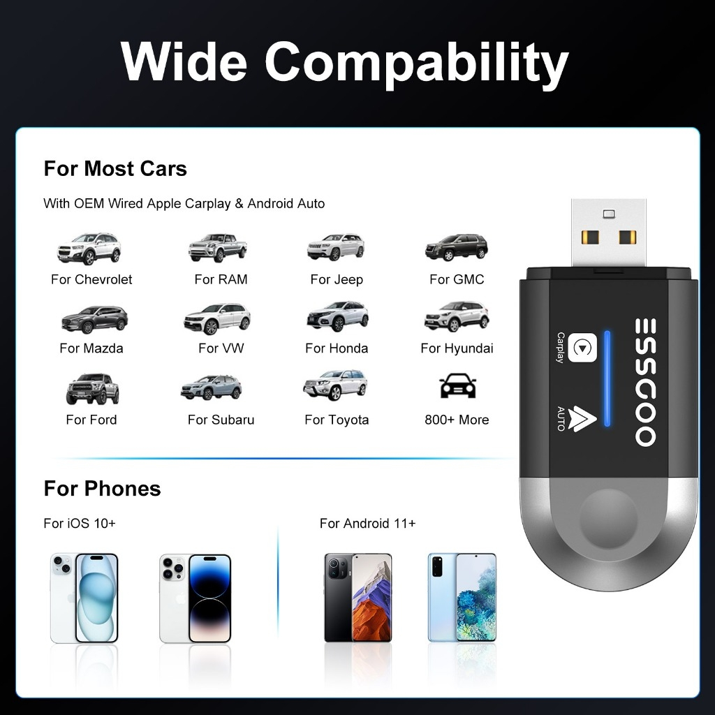 (Do São Paulo)ESSGOO Adaptador Carplay Com Fio Para Android Auto 2 Em 1 Mini Plug and Play Compatível Conexão Rápida