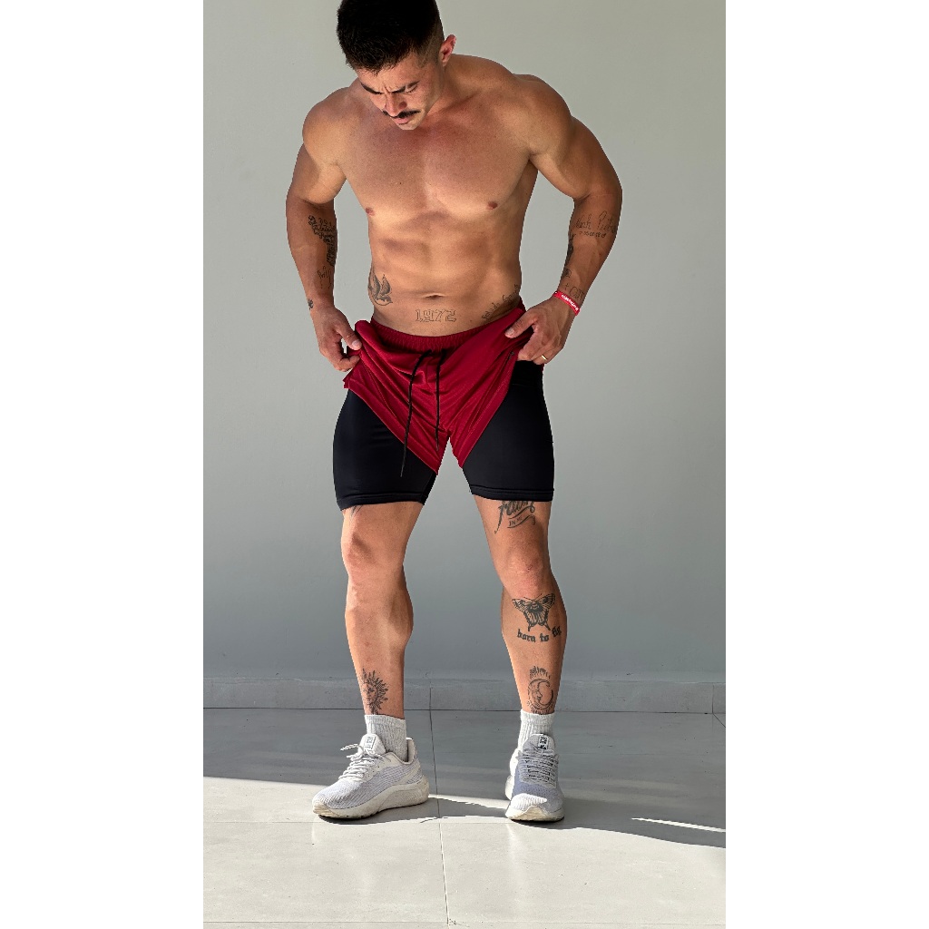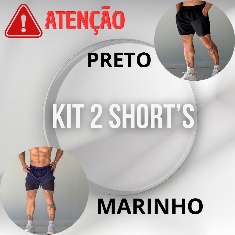 Kit 2 Bermudas Masculina 2 em 1 com Forro de Compressão.