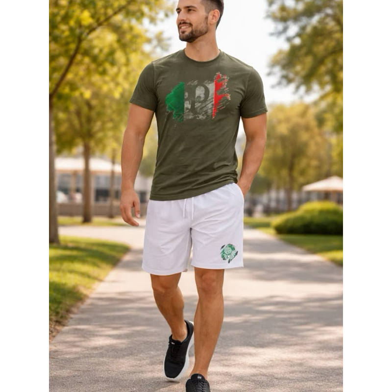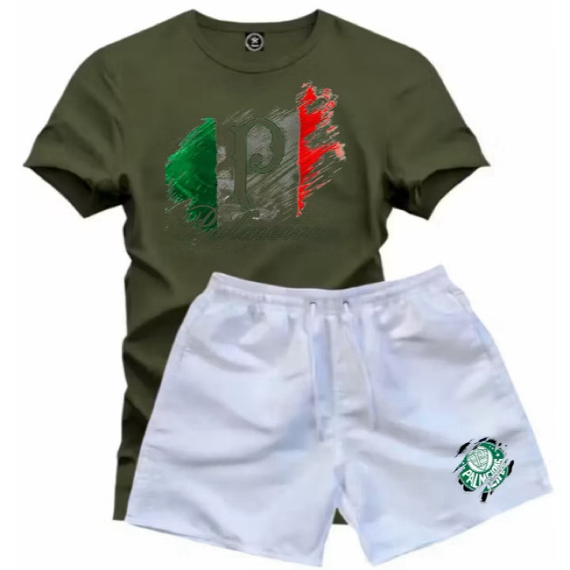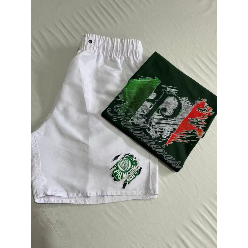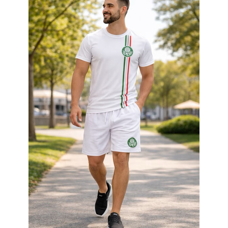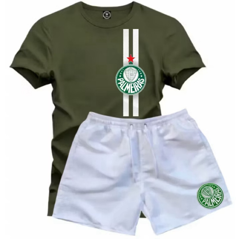 Conjunto Masculino Palmeiras Camiseta 100% Algodão + Short Tactel Premium Casual Confortável Futebol Verão