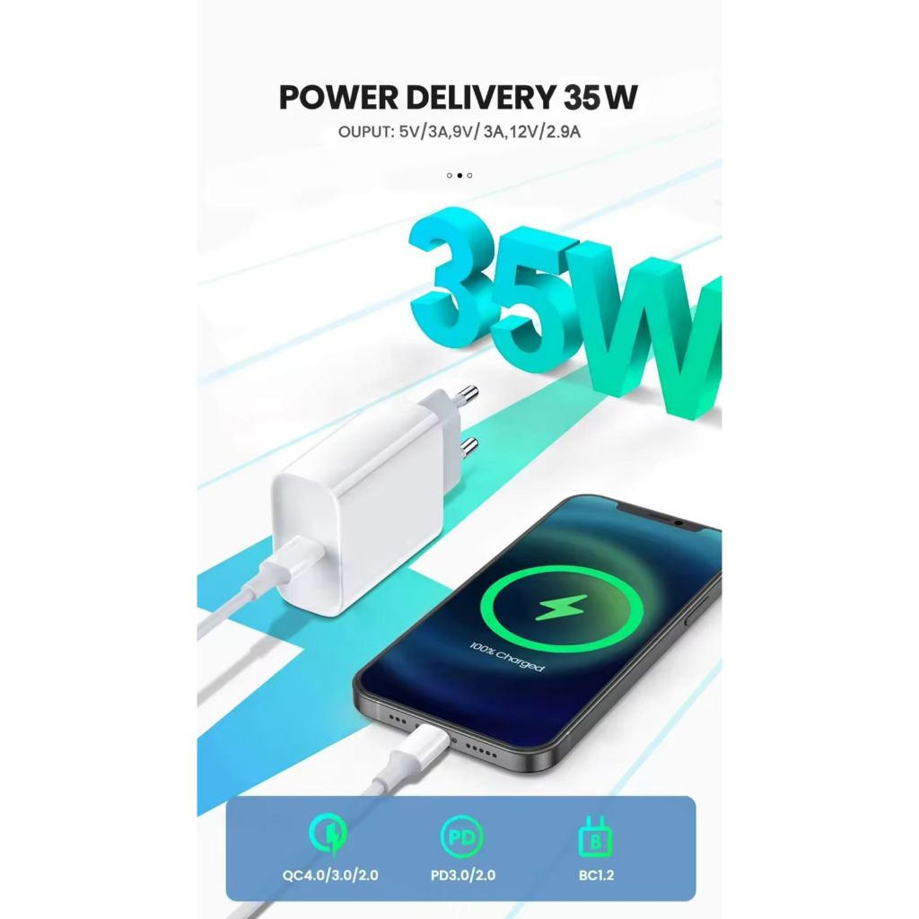 Carregador Turbo 35W iPhone USB C Original Fonte PD Carregador iPhone 15 iPhone 16