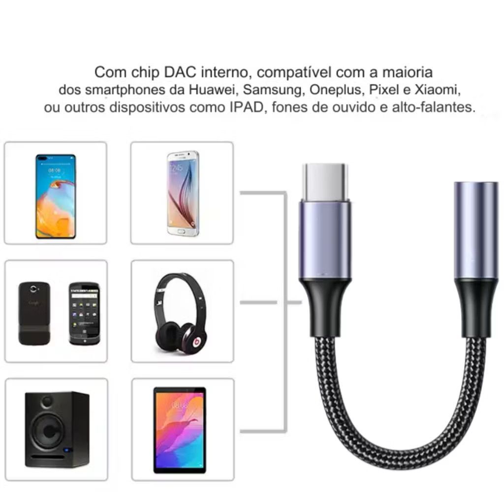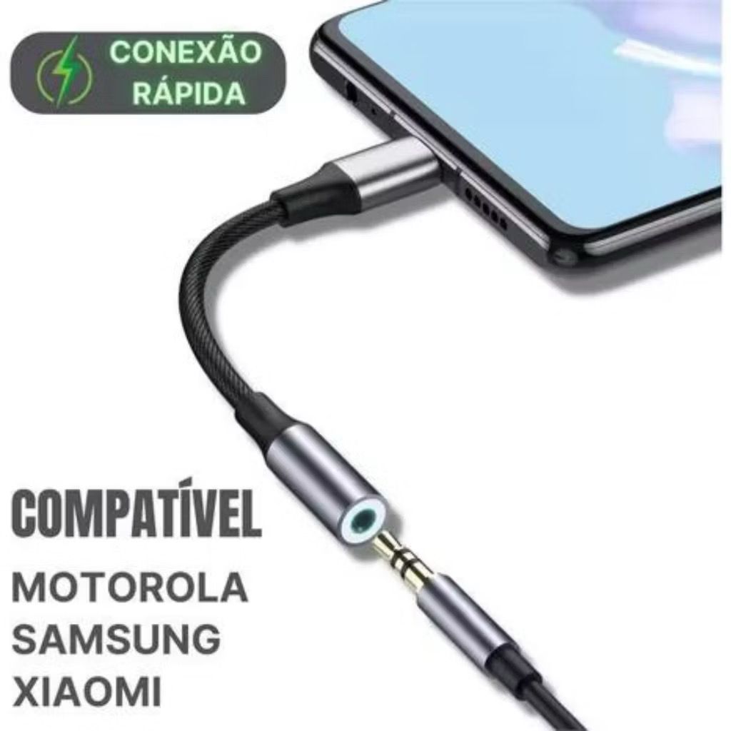 Cabo Adaptador Tipo C Usb-c Para Fone Ouvido P2 P3 3.5mm compativel com Samsung Xiaomi