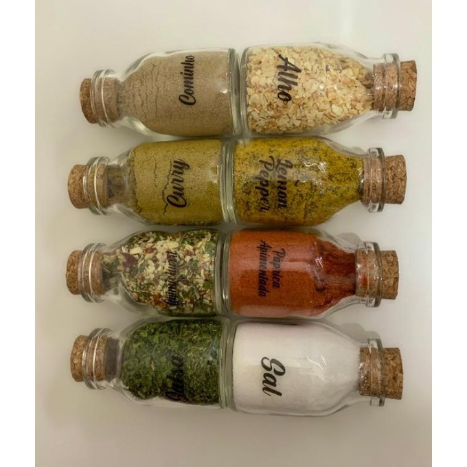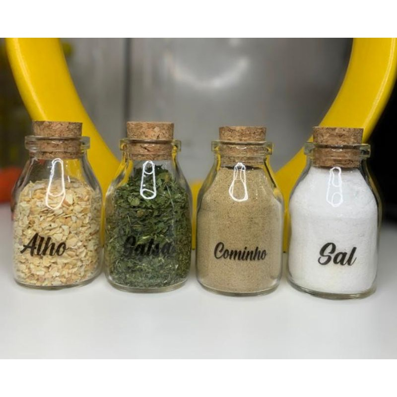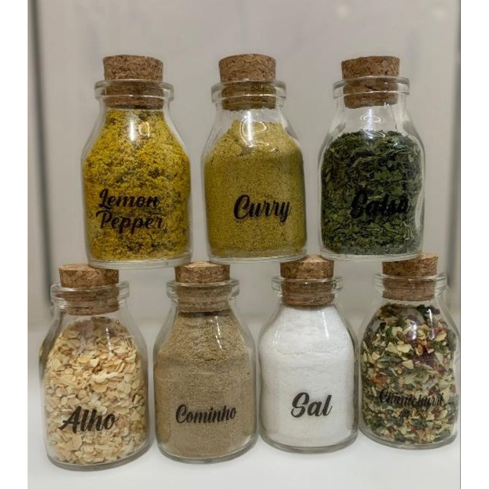Kit Porta Temperos de Vidro C/ Adesivos e Rolha