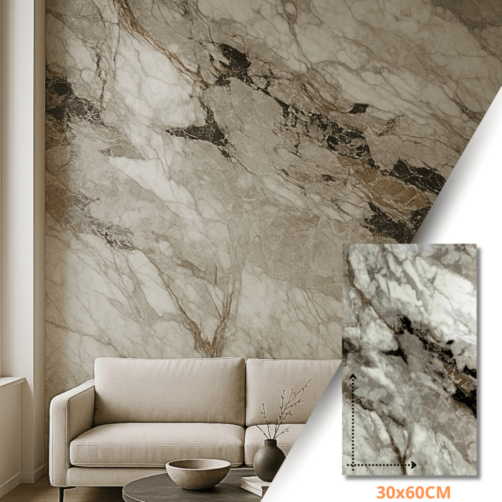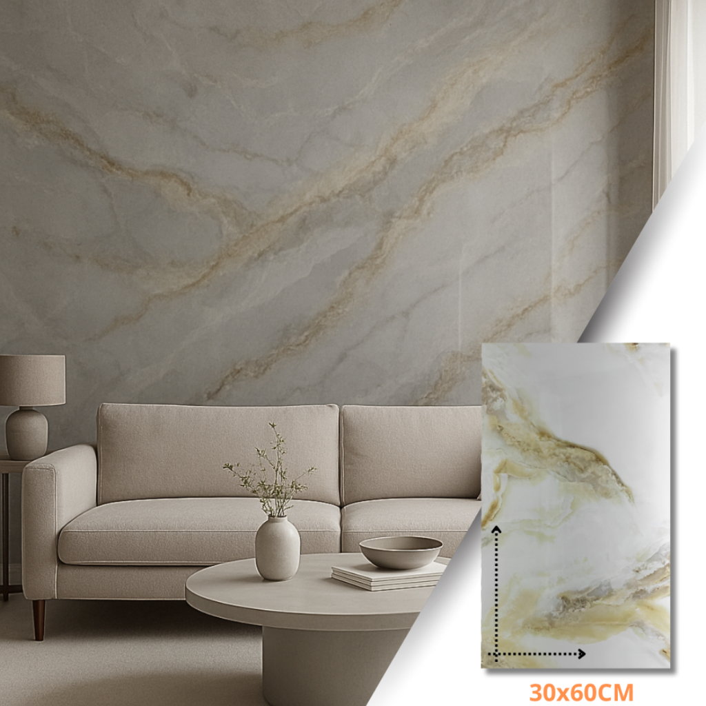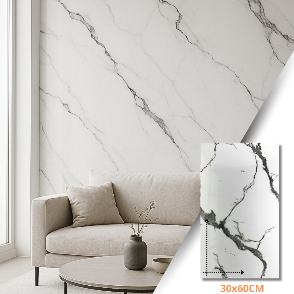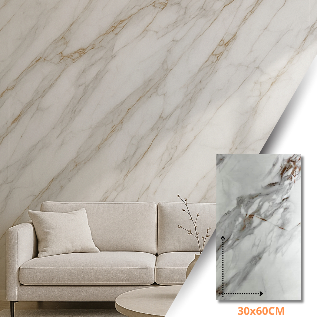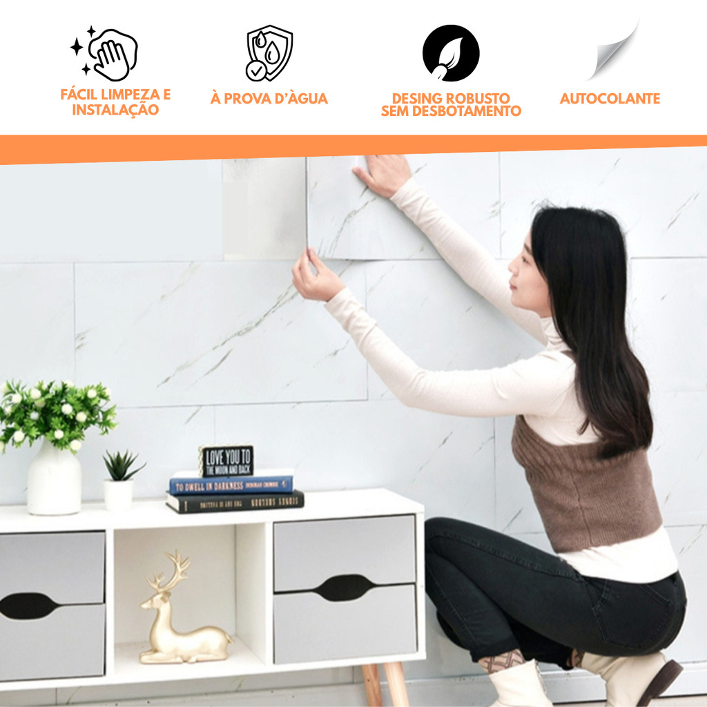 Kit Placa Adesiva Mármore De Parede Relevo Lavável 30cm X 60cm