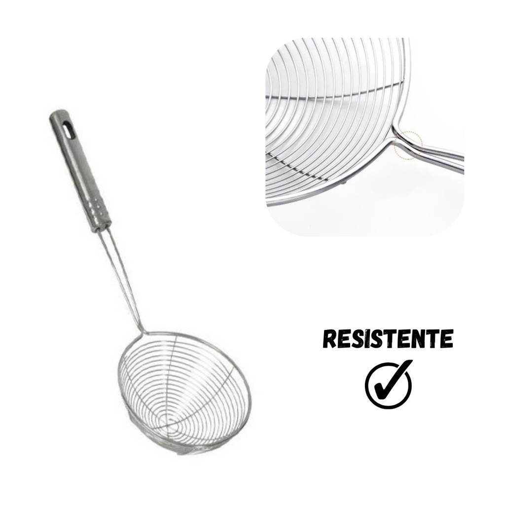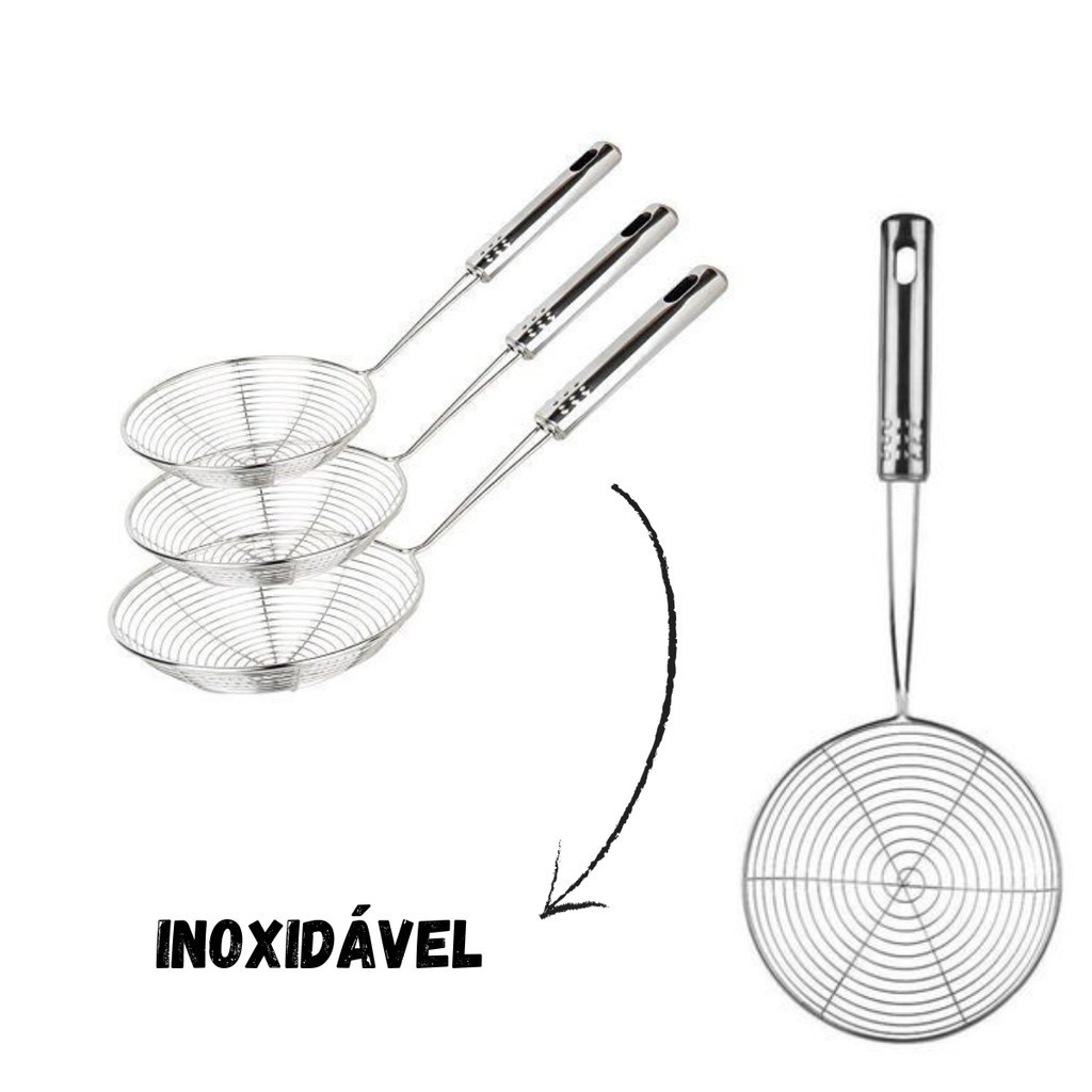 Kit 2 Escumadeira Fritura Inox Batata Pastel Resistente 13/19cm