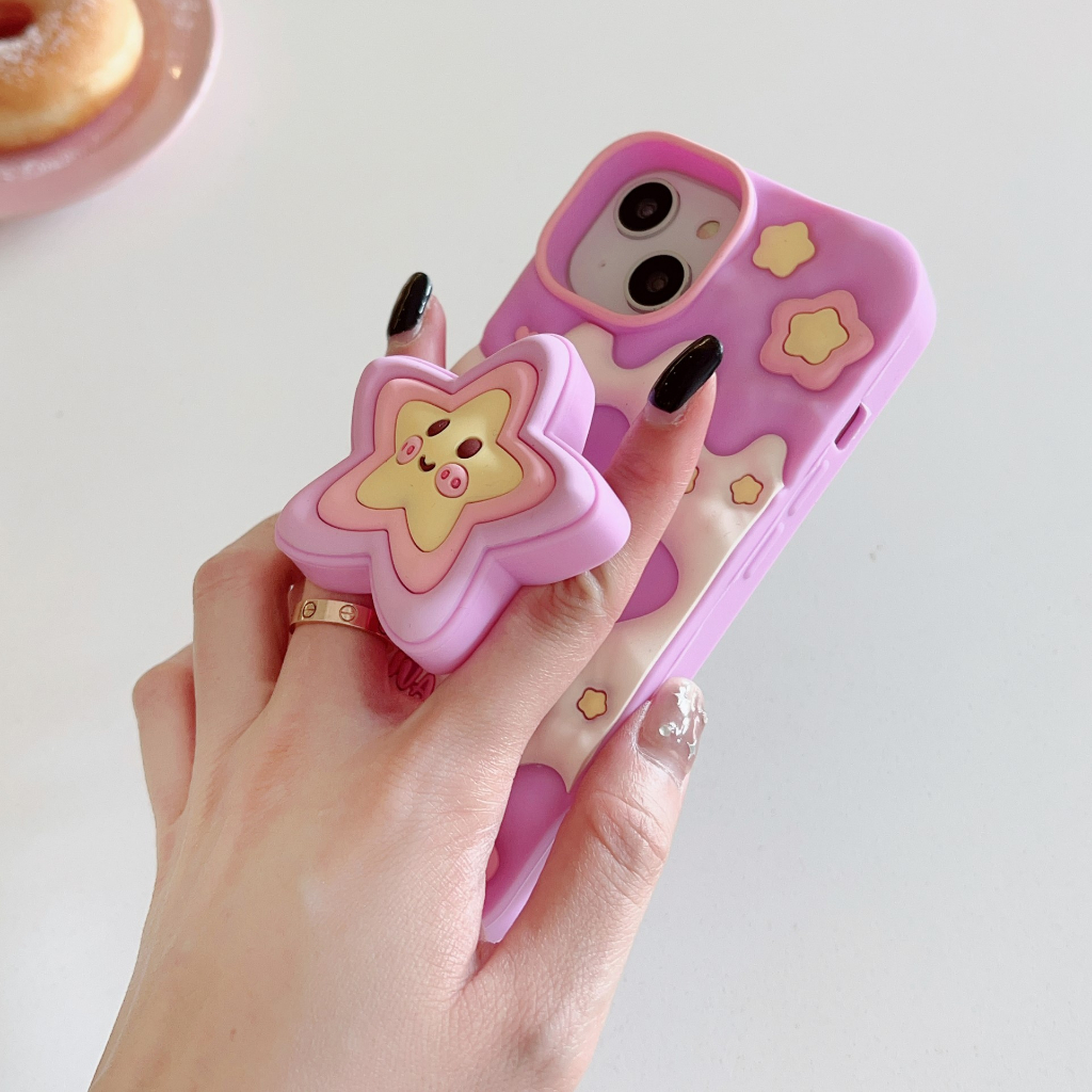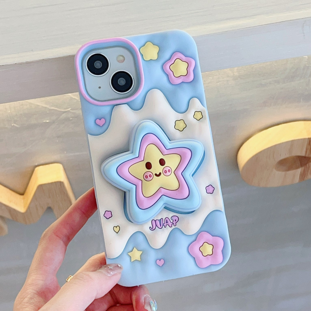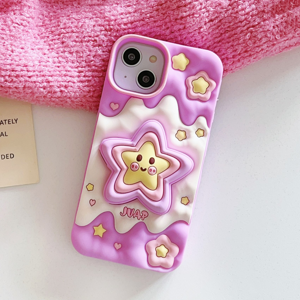 Capa De Telefone De Silicone Líquido Estrela Estereoscópica De Sorvete Para iPhone 11 12 13 14 15 Pro Max Caixa Com Funç