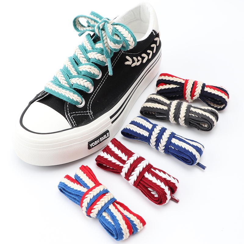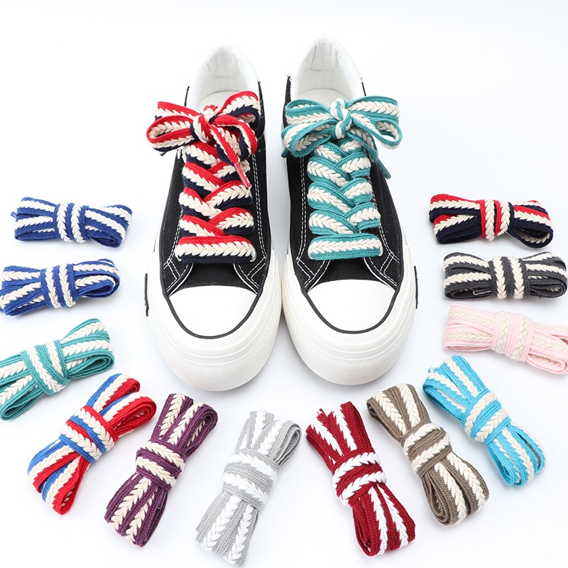 1 Par De Cadarços Planos Para Tênis Largos 1,5 CM Cadarço Arco-Íris De Luxo Mulheres Homem Tecido Texturizado Cor De Clássico