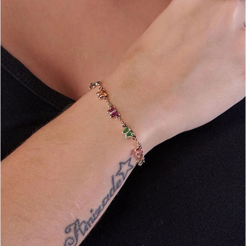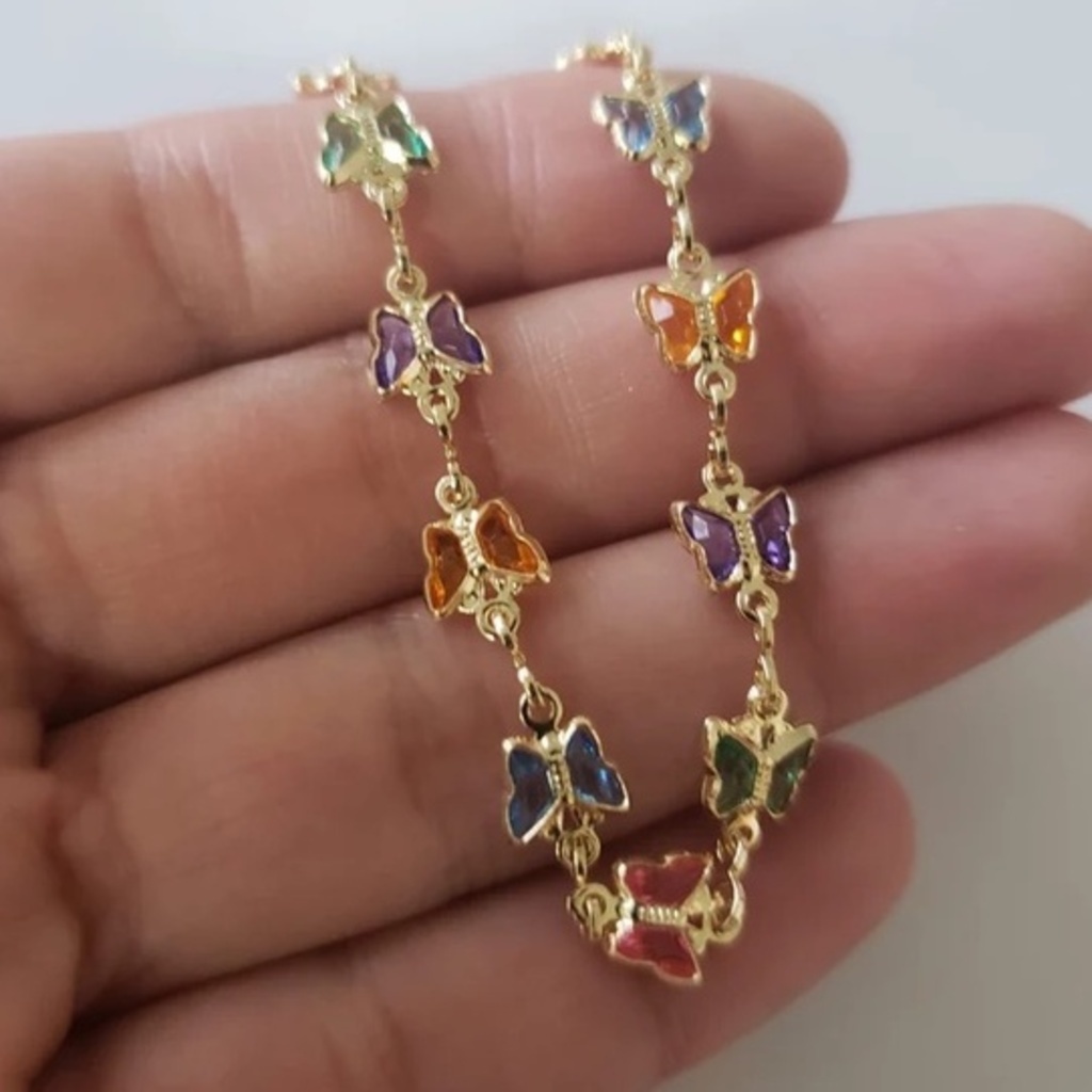 Pulseira Borboleta Colorido Folheado Danhado Ouro 18k