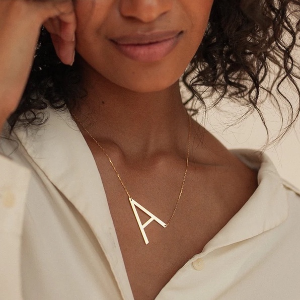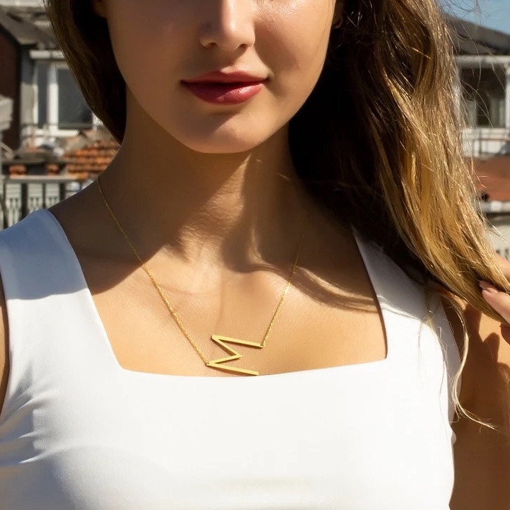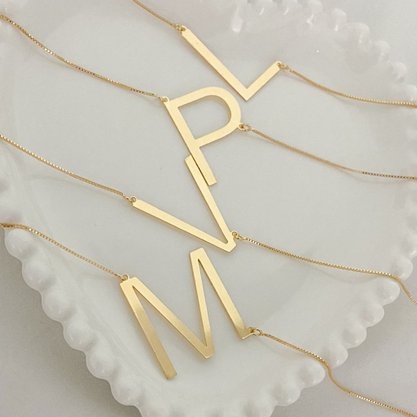 Colar Letra Lisa Folheado Inicial cordão veneziana Semi Joia Banhada Folheado Ouro 18K e Prata 925 4cm Validade 3 meses