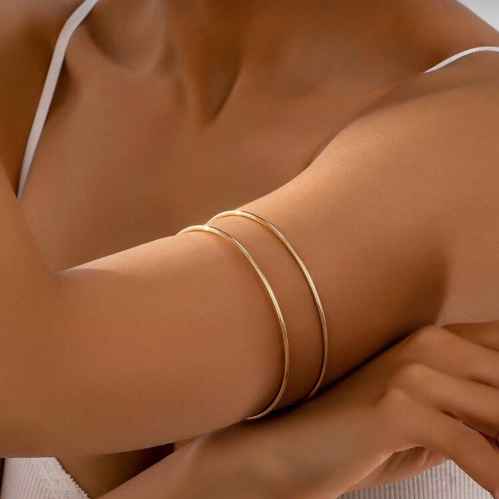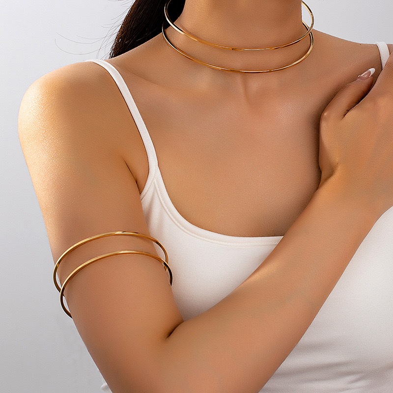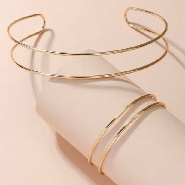 1 conjunto Fashionable Gargantilha e Bracelete Aro Duplo Dois Fios Banhado Ouro 18k