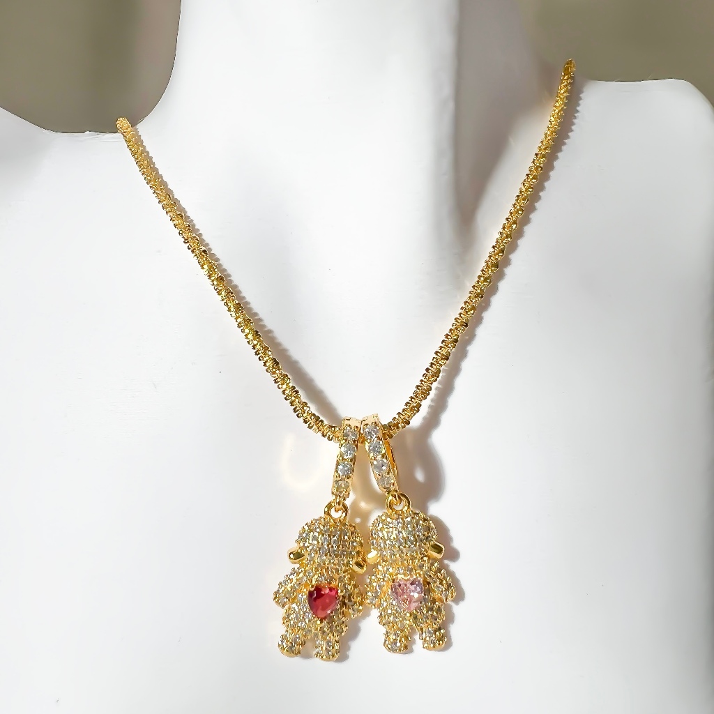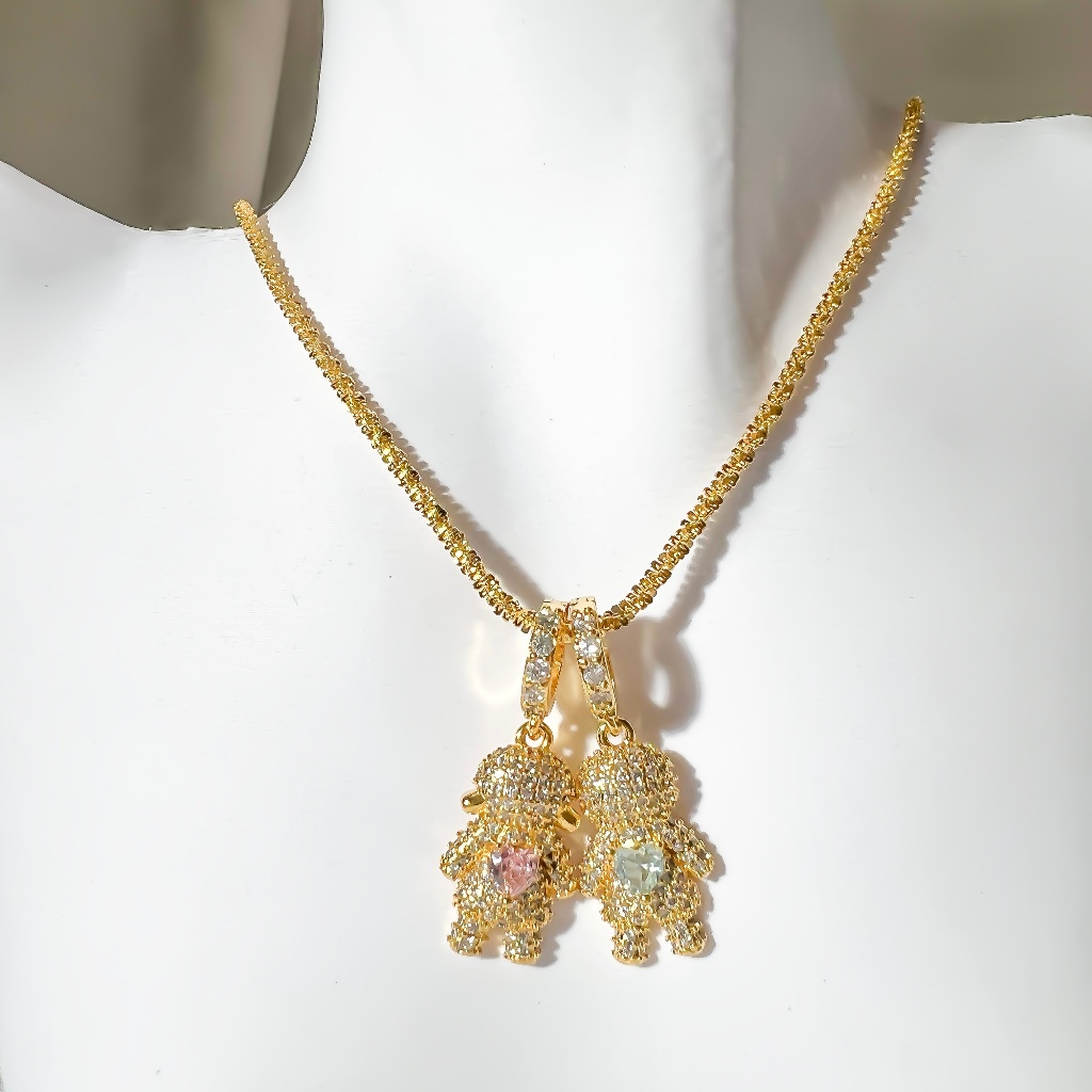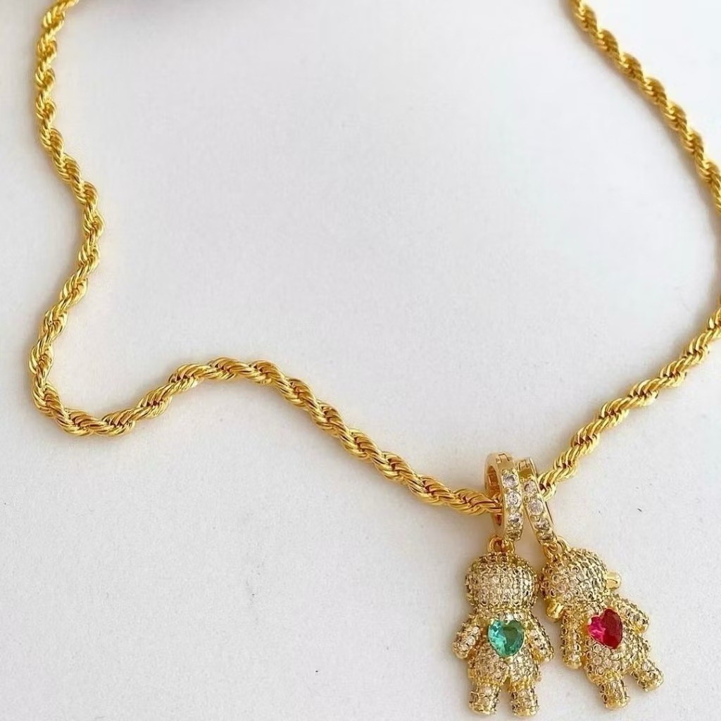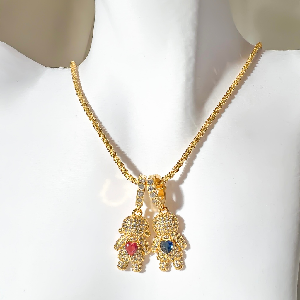 Colar Filhos Pingente Menino/Menina com Pedras Feminino Ouro 18k