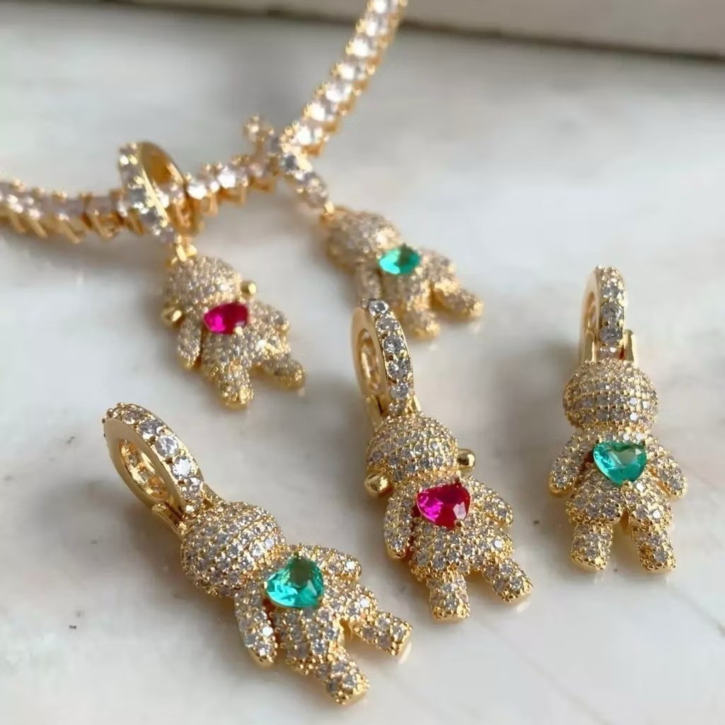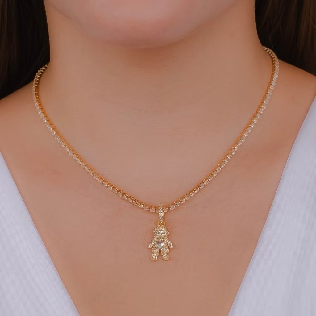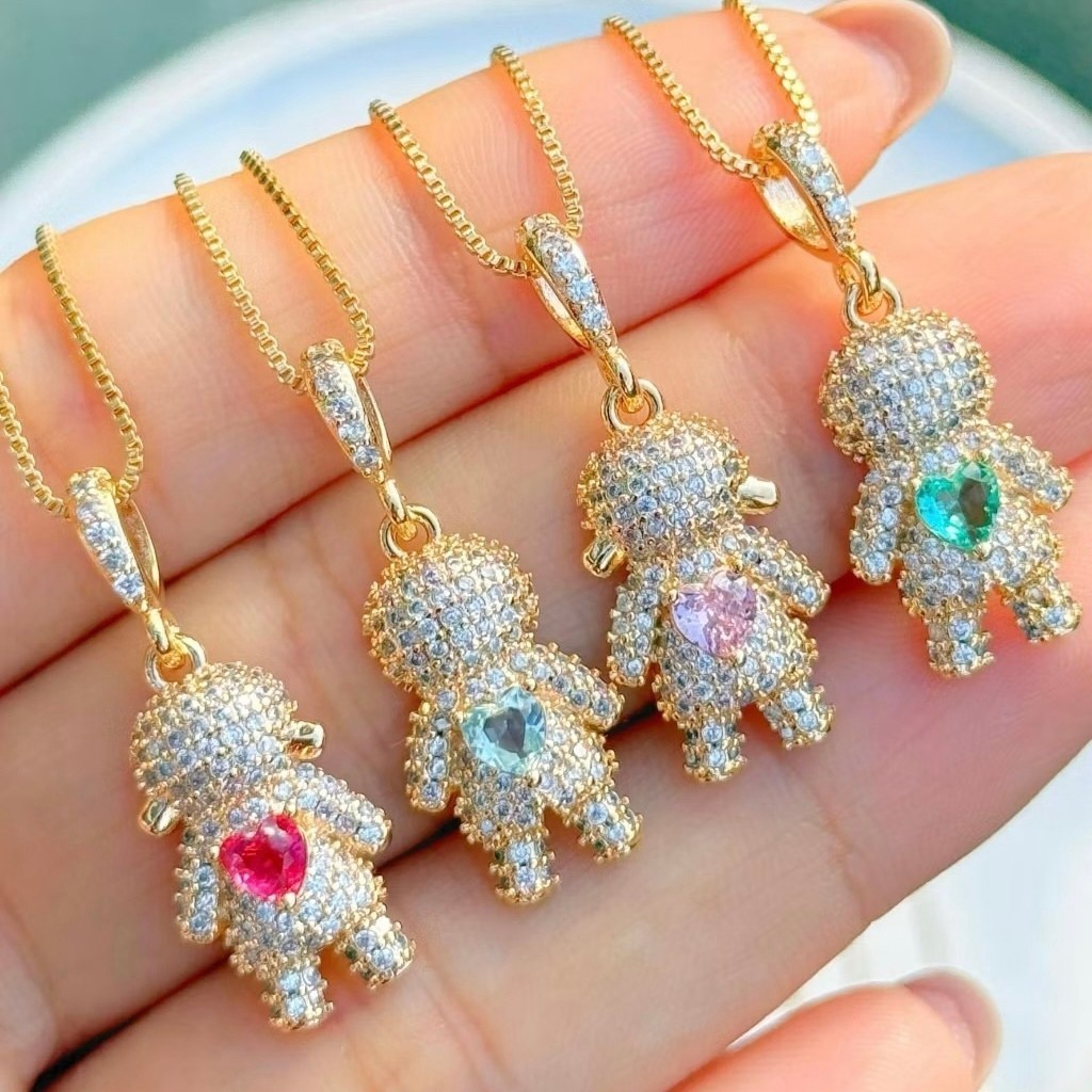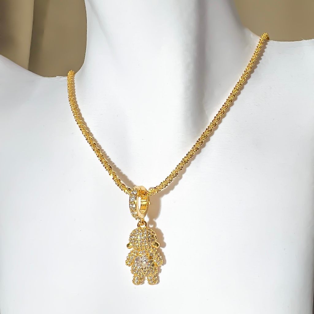 Colar Filhos Pingente Menino/Menina com Pedras Feminino Ouro 18k