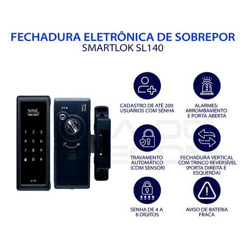 Fechadura Digital Eletronica Senha Sobrepor Papaiz Sl140
