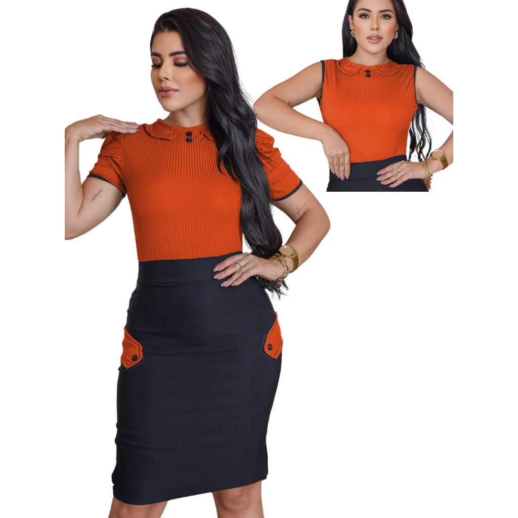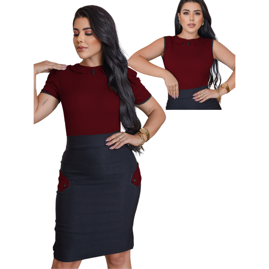 Conjunto com 3 Peças Saia Lápis Blusa Regata e Blusa com Manga Rose Samita