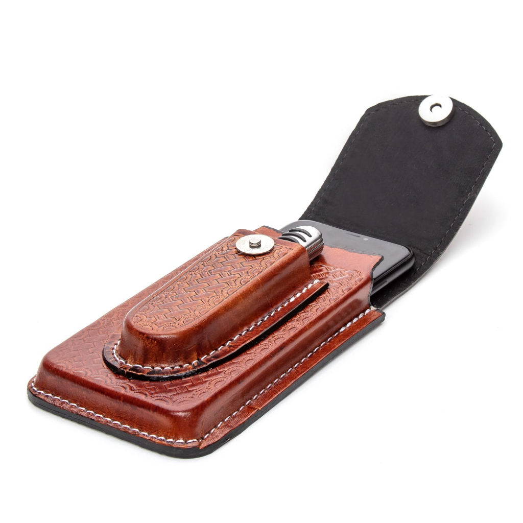 Bainha Capinha de Celular e Canivete em Couro Legítimo Country