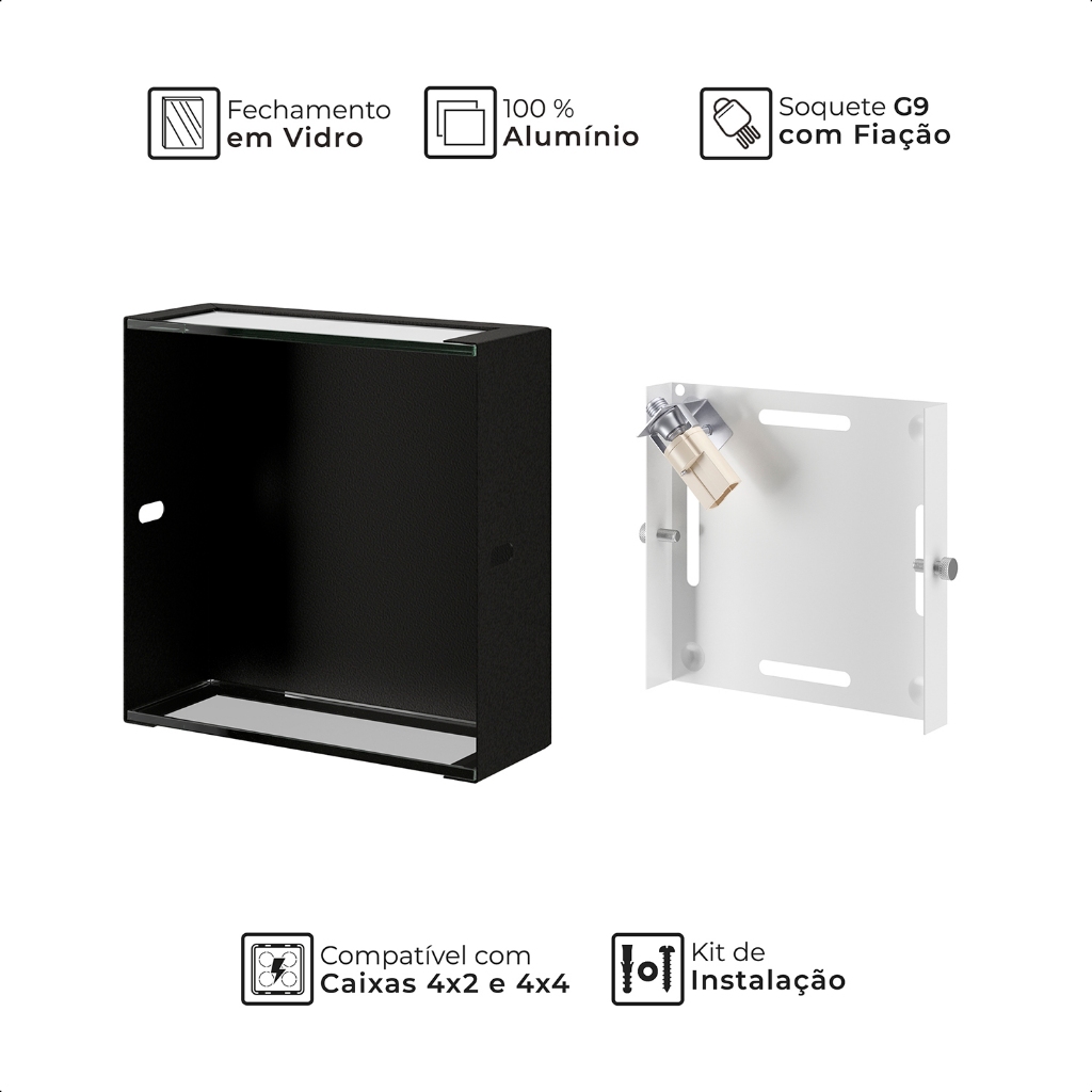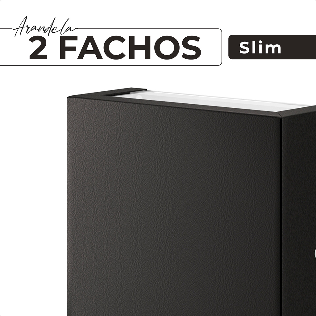 Kit 2 Unidades Arandela Slim 2 Fachos Focos em Alumínio e Vidro Externa Muro Parede