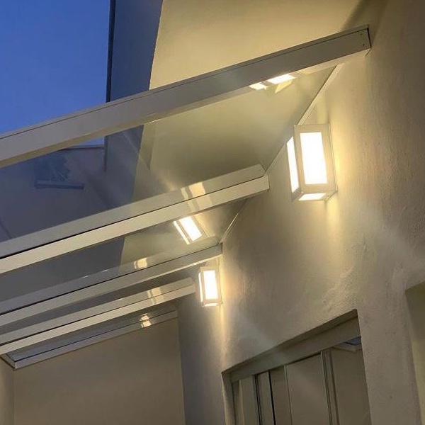 Arandela Retangular 5 Vidros em Alumínio e Vidro Externa Interna Muro Parede E-27