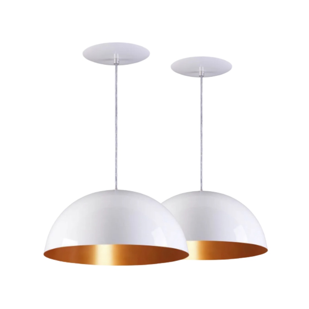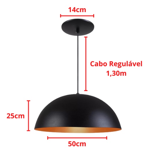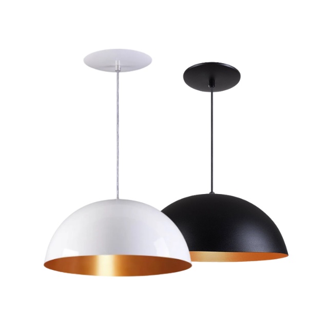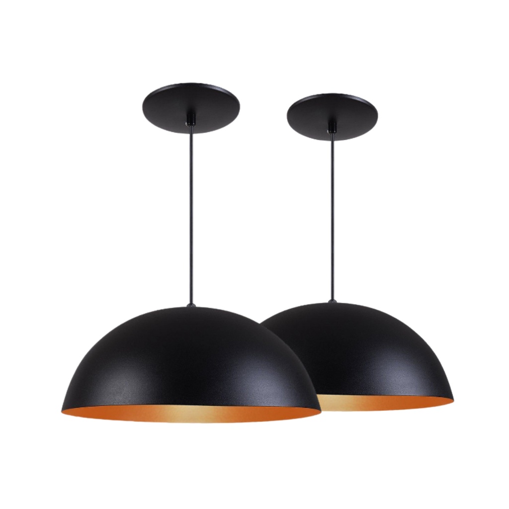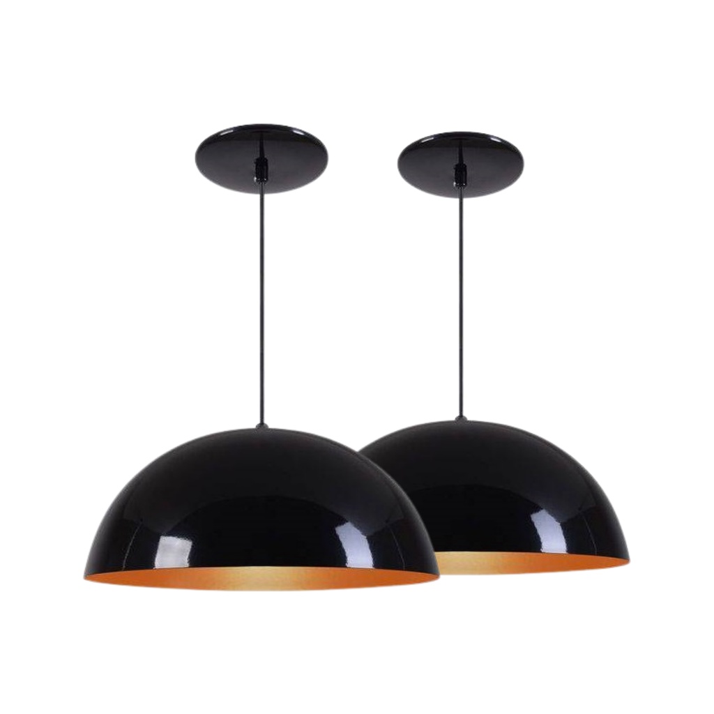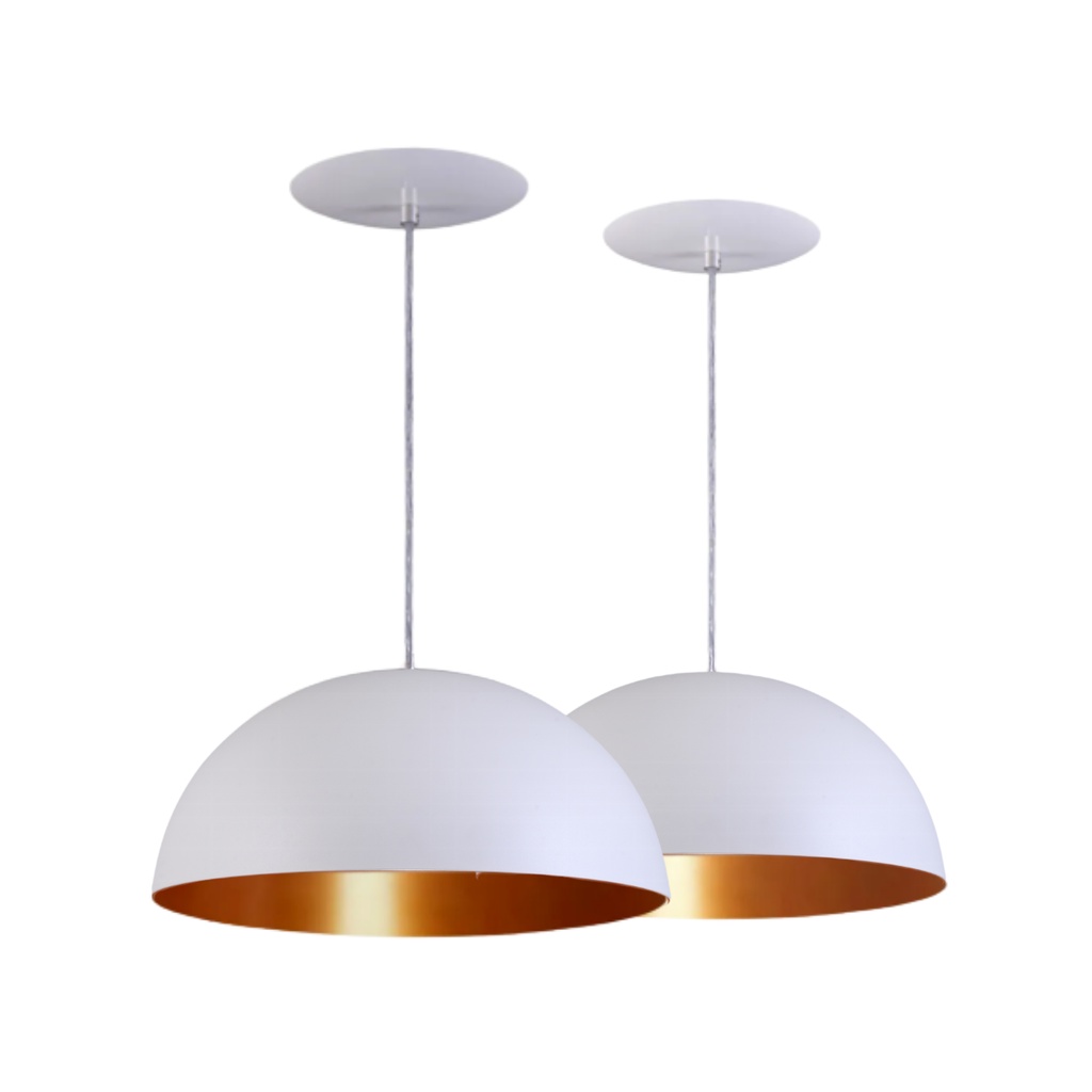 Kit 2 Pendente Meia Lua Meia Bola 50cm em Alumínio Preto Branco Cobre Luminária Lustre