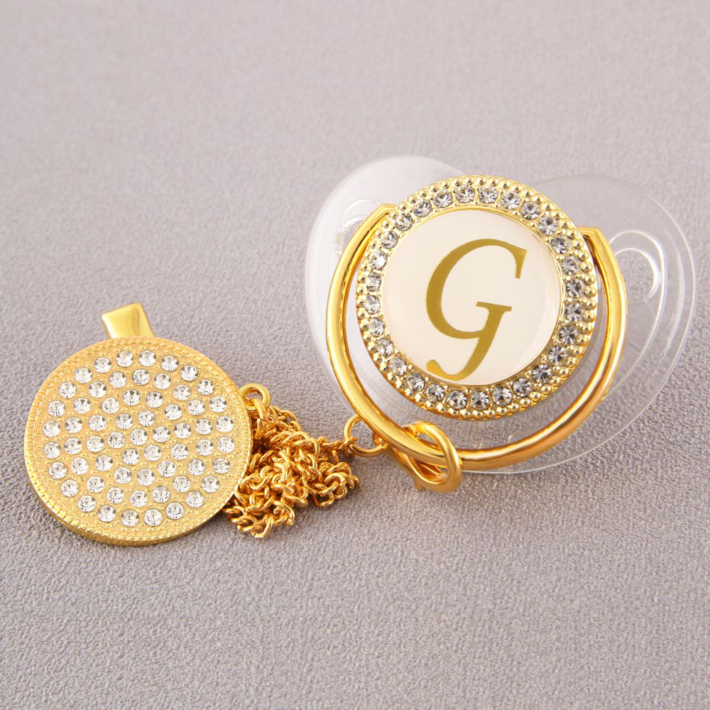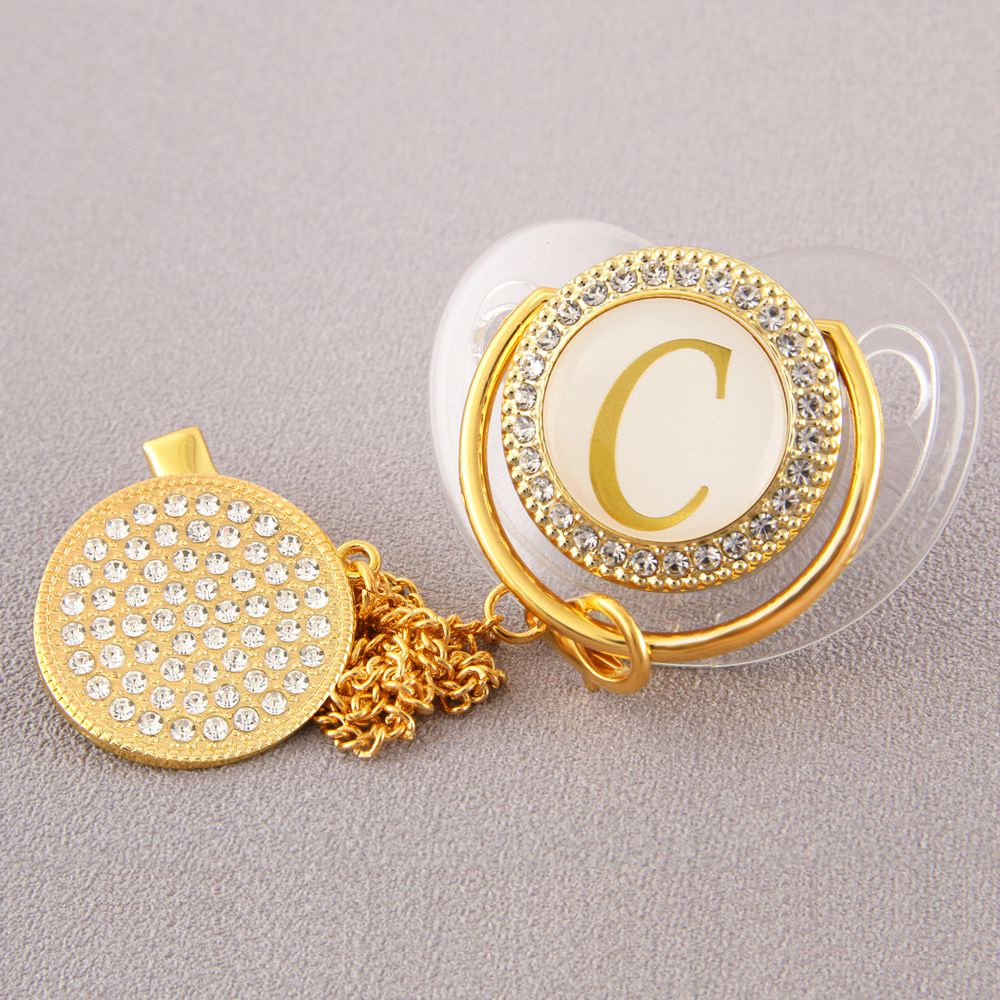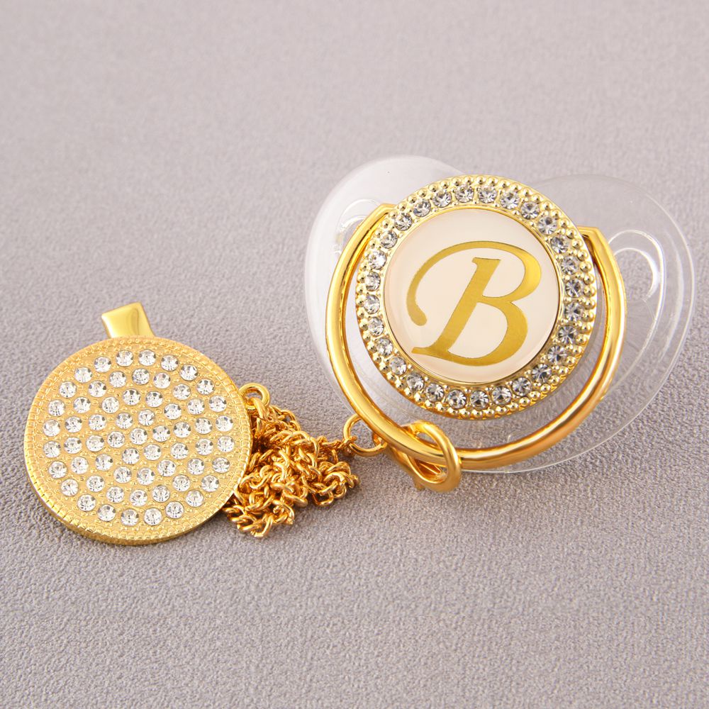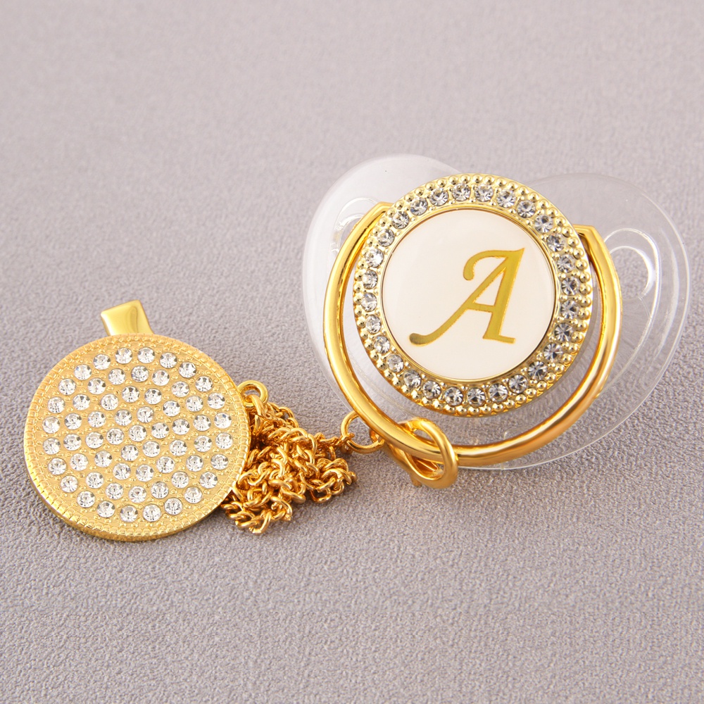 Transparente 26 Carta Inicial De Luxo Pacifier De Bebê Com Clip De Corrente Recém-Nascido BPA Boneco Chupeta 0-18 Meses