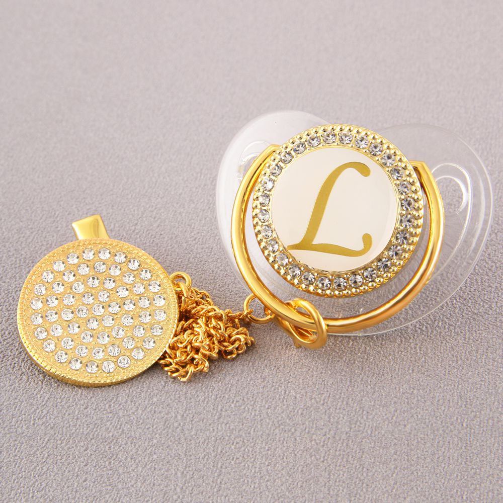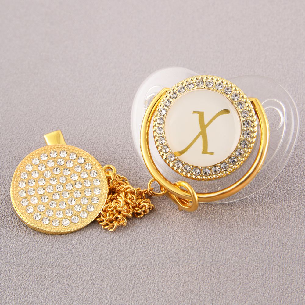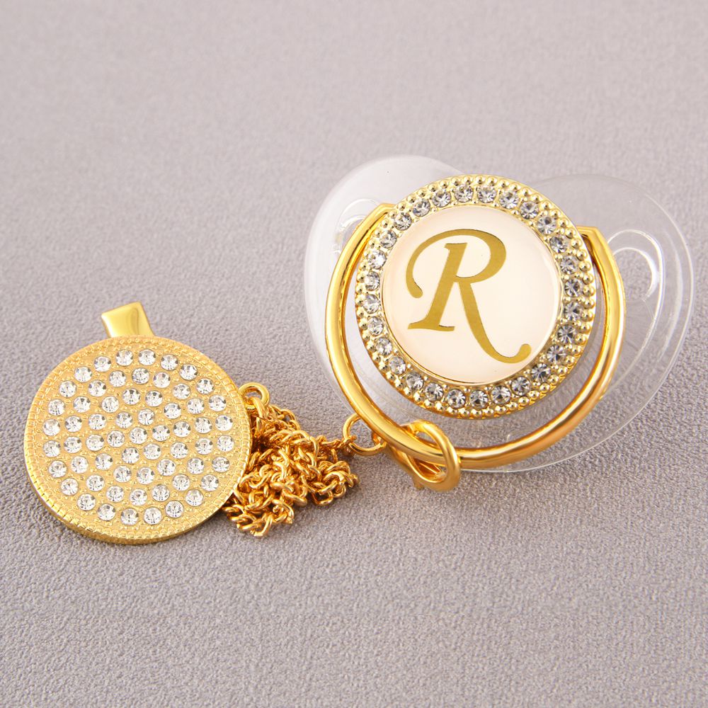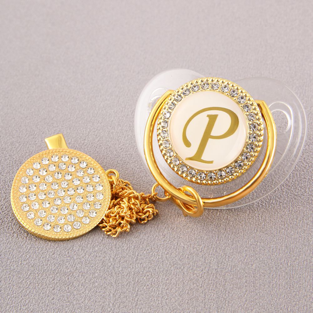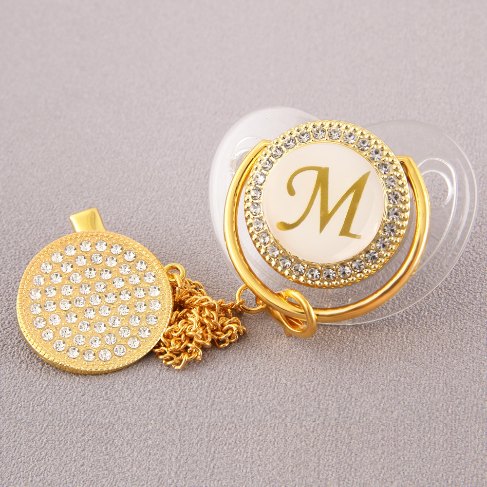 Transparente 26 Carta Inicial De Luxo Pacifier De Bebê Com Clip De Corrente Recém-Nascido BPA Boneco Chupeta 0-18 Meses