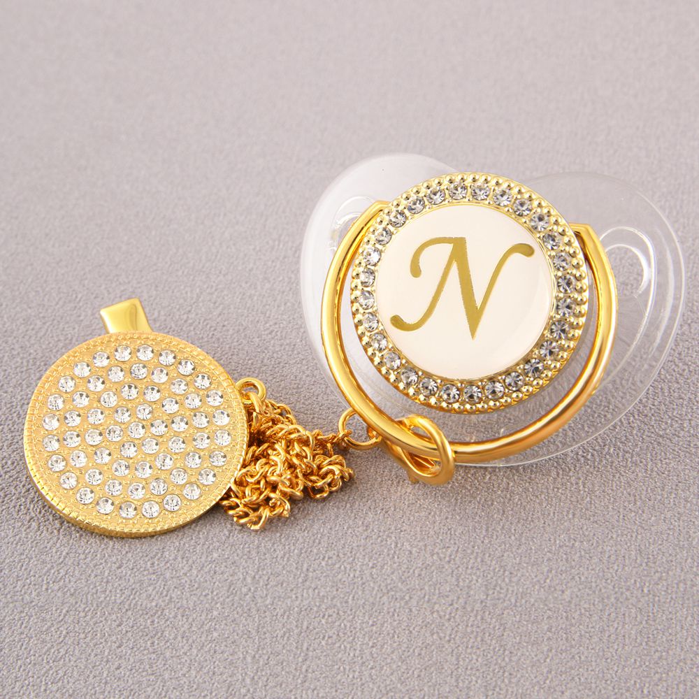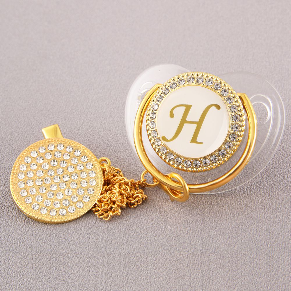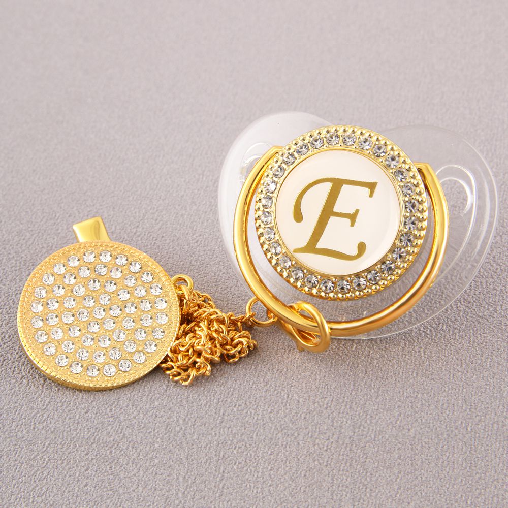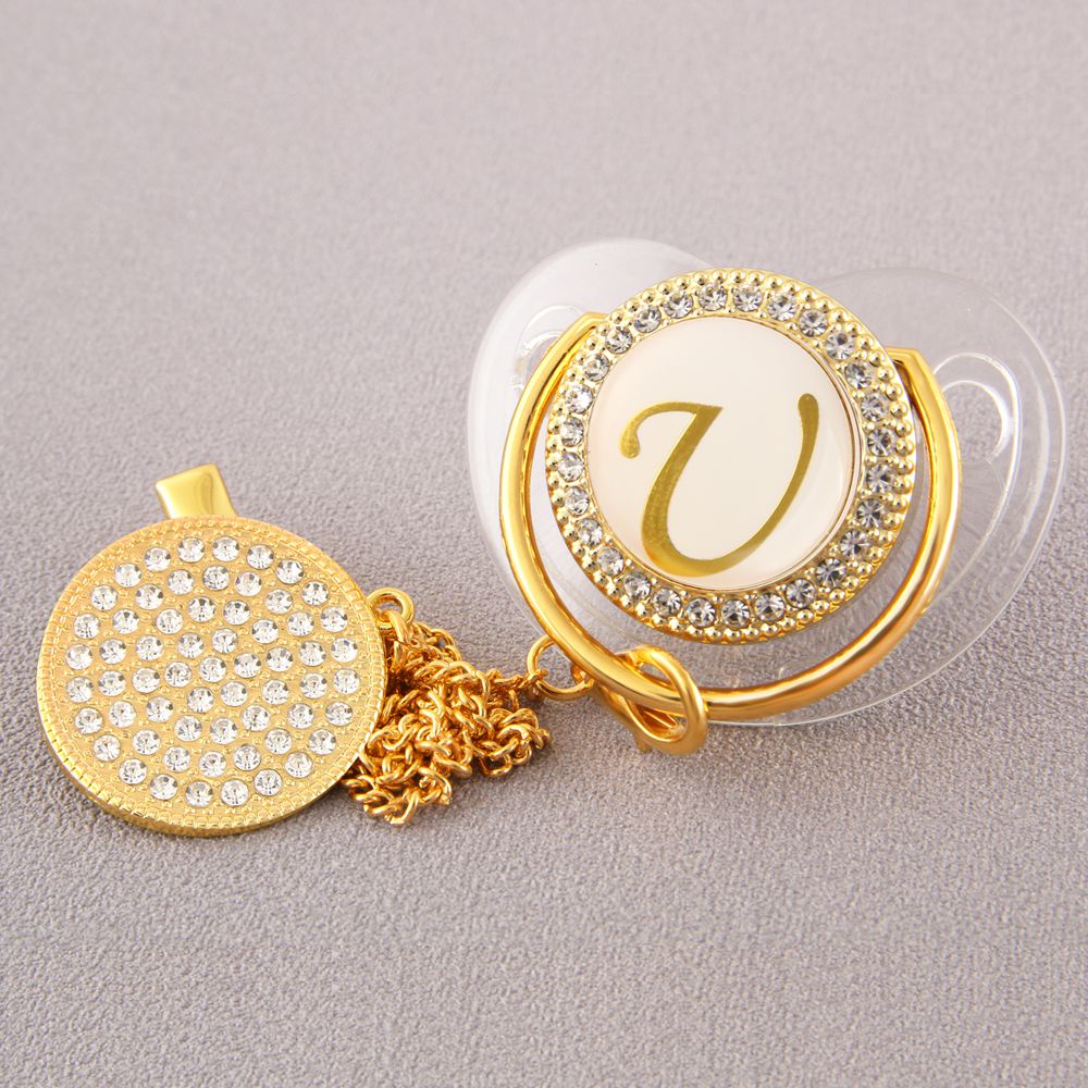 Transparente 26 Carta Inicial De Luxo Pacifier De Bebê Com Clip De Corrente Recém-Nascido BPA Boneco Chupeta 0-18 Meses