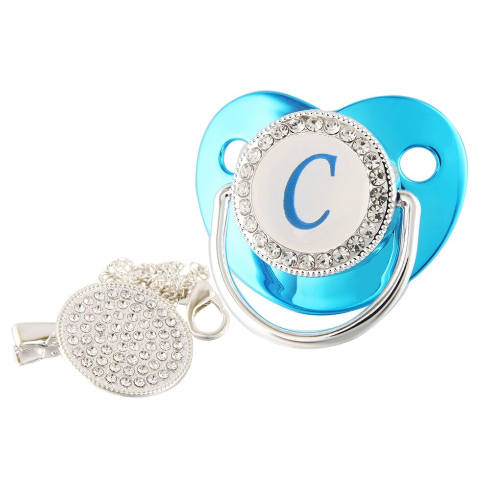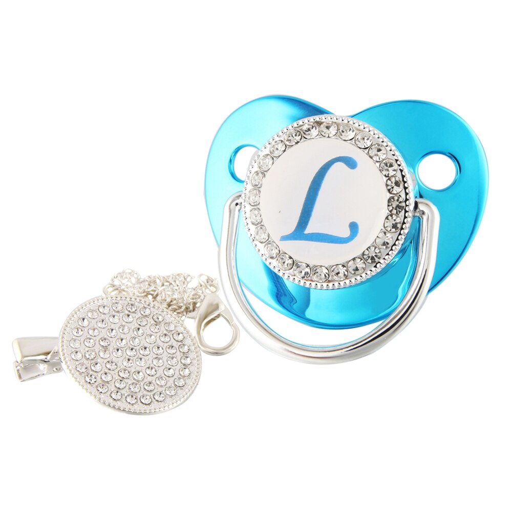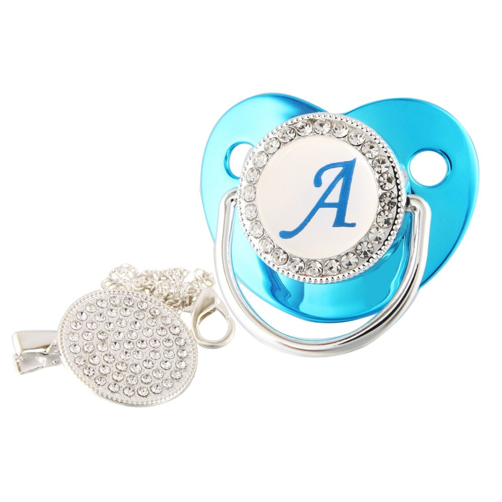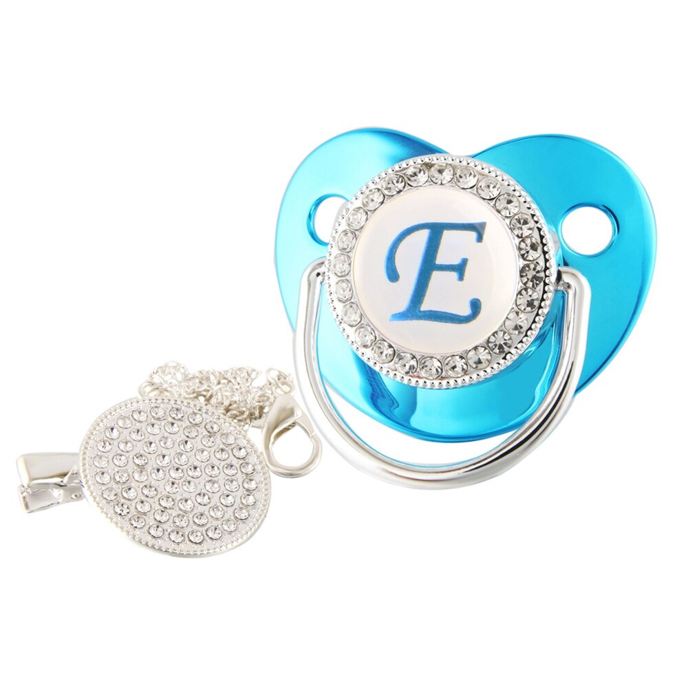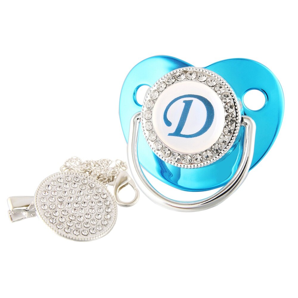 Nome De Luxo Carta Inicial Clipes Para Bebês Recém Nascido BPA Silicone Livre Metálico Azul Pacifier Suporte Teether Baby Show