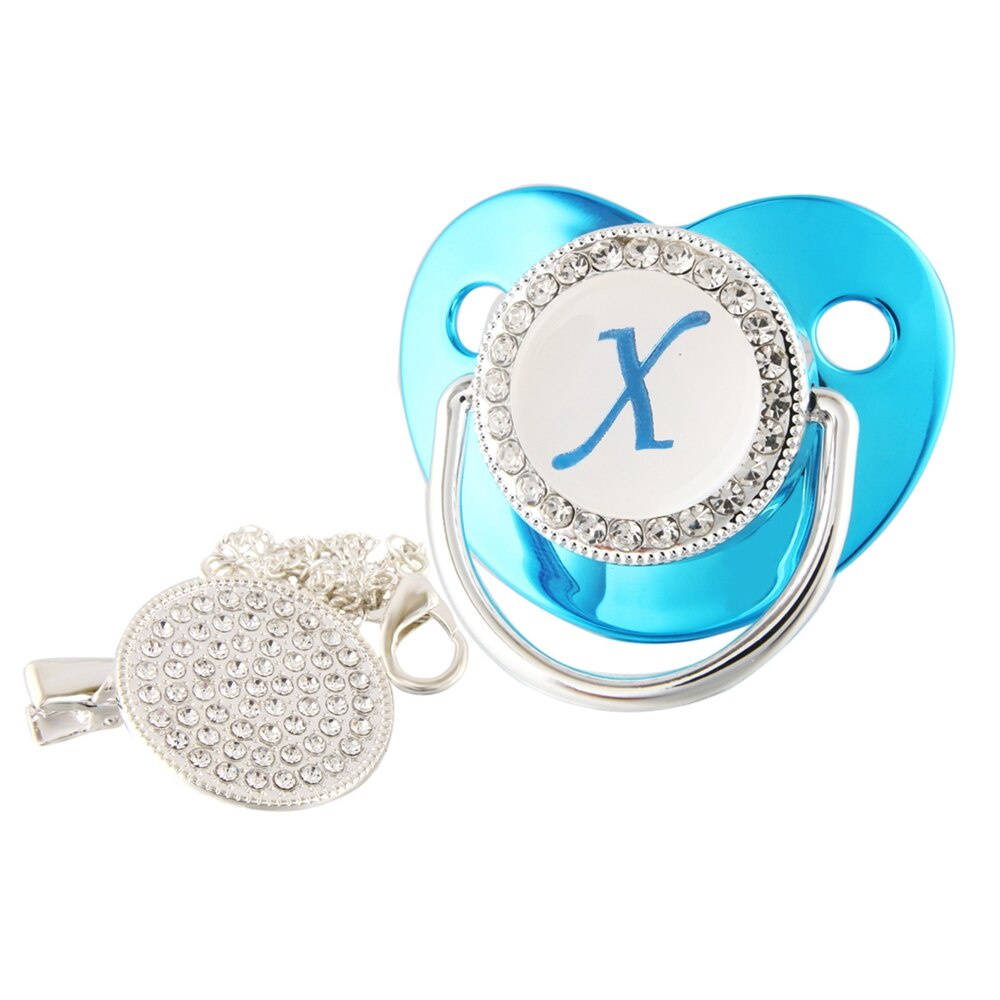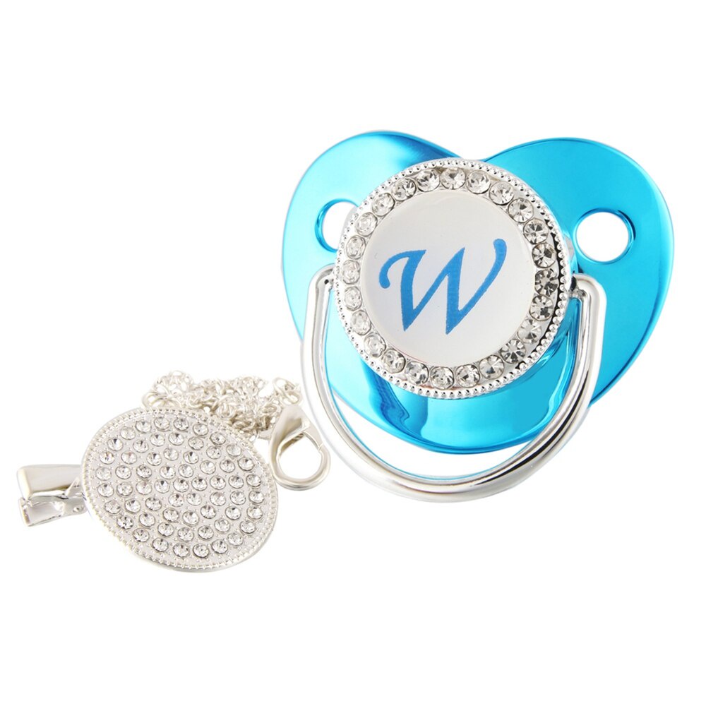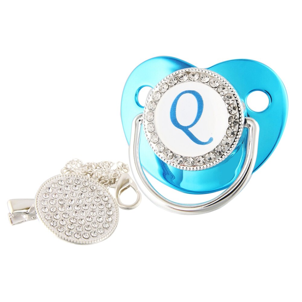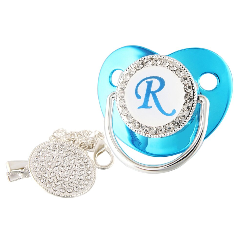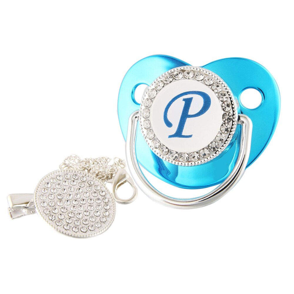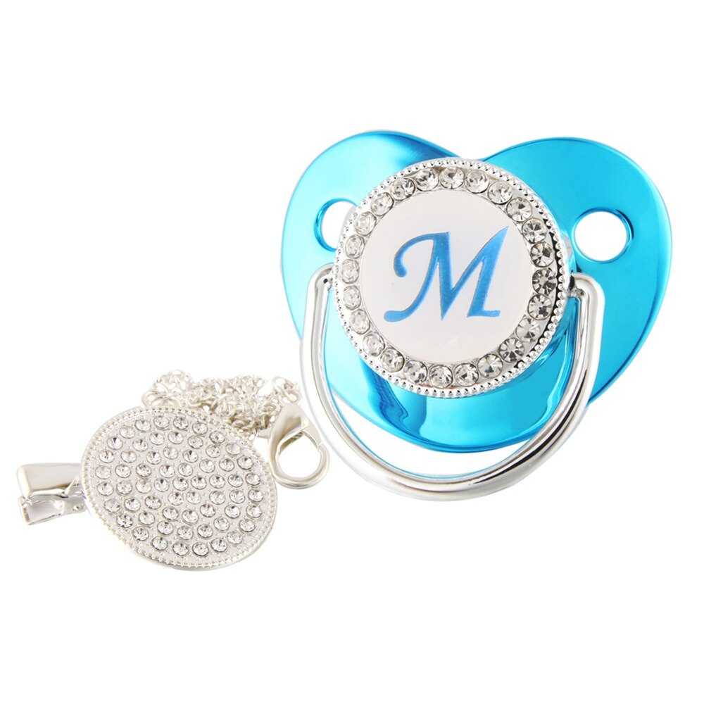 Nome De Luxo Carta Inicial Clipes Para Bebês Recém Nascido BPA Silicone Livre Metálico Azul Pacifier Suporte Teether Baby Show