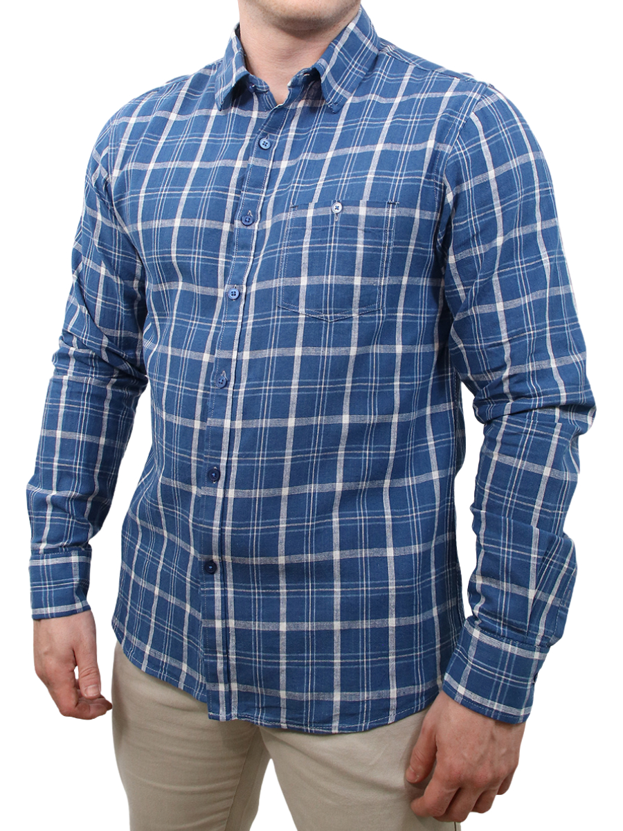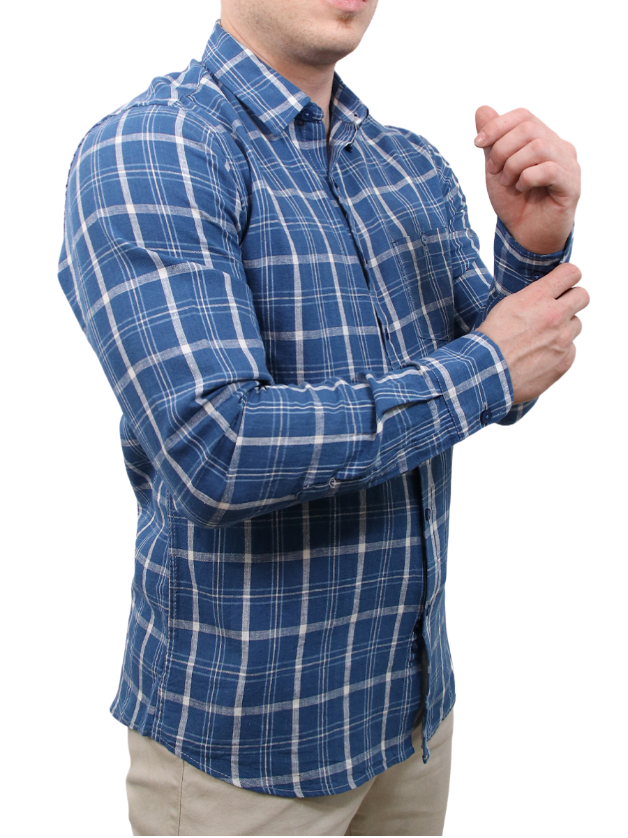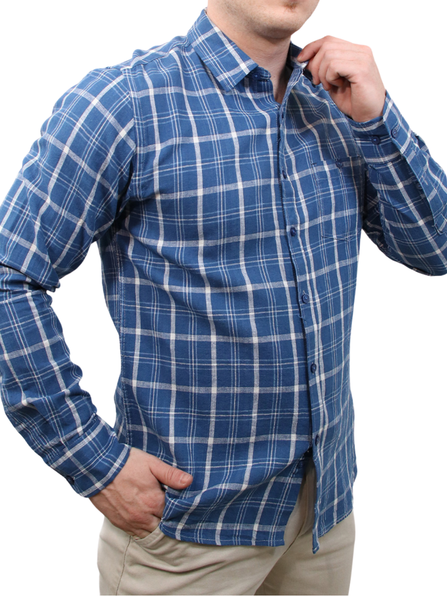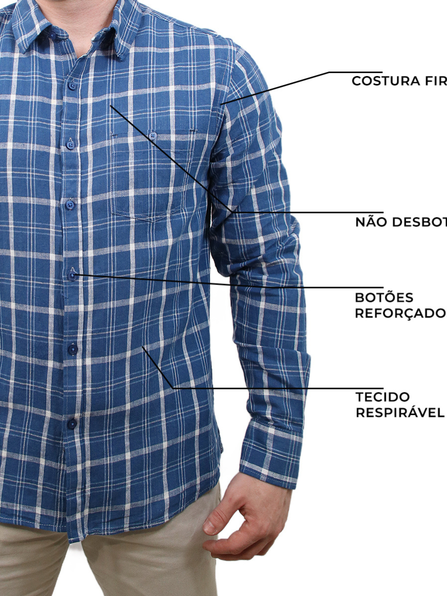 Camisa Social Masculina Estampa Xadrez Slim Fit Manga Longa Com Bolso Casual