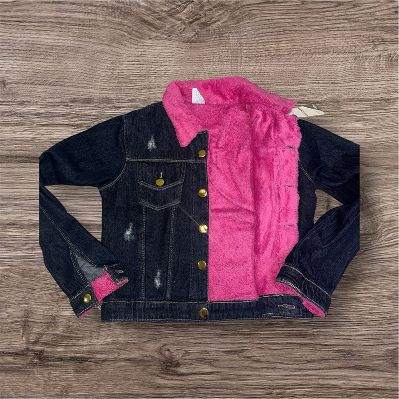 casaco jeans com pelos