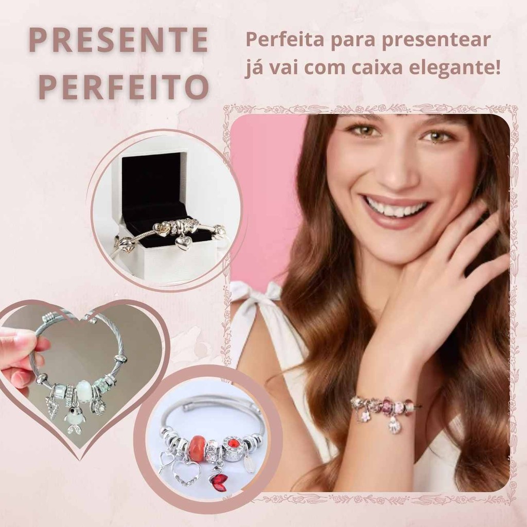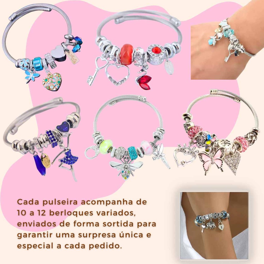 Pulseira Life Aço Inoxidável Prata Com Berloques Ajustável Charme Luxo Presente Feminino Pingentes Estilo Versátil Mais