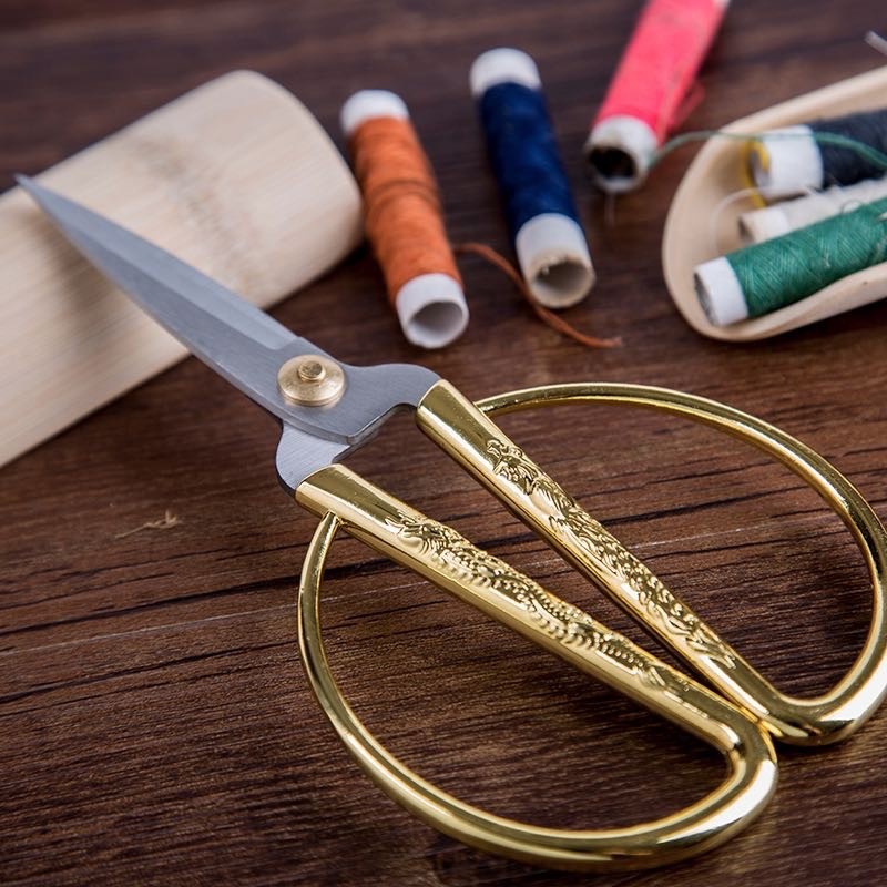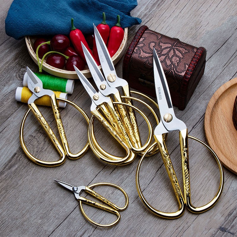 Tesoura dourada em ziguezague de alta durabilidade em aço vintage alfaiate para artesanato doméstico para tecido tesouras bordados tesouras de costura