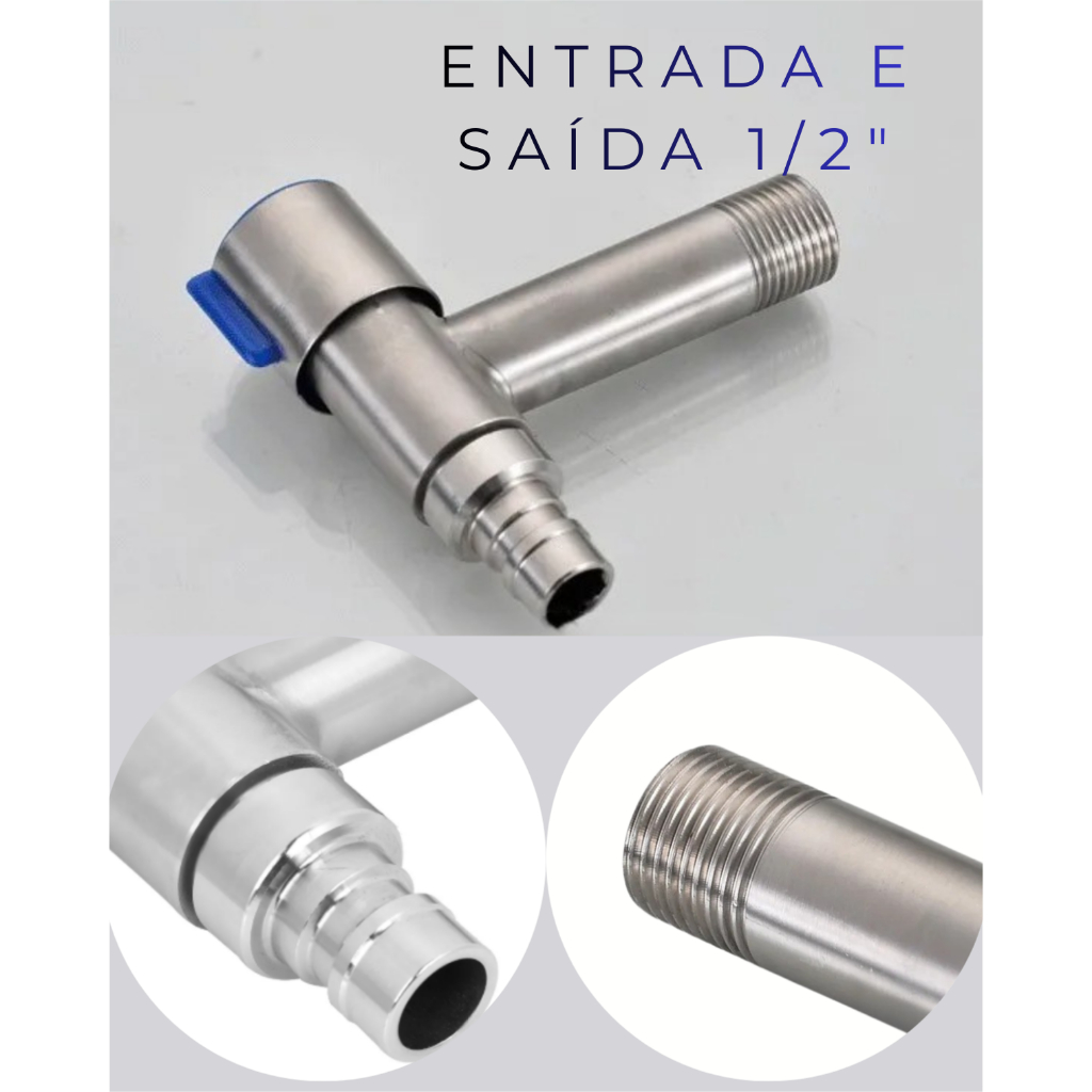 Torneira Registro Aço Inox 304 de 1/2 Polegada e 1/4 de Volta
