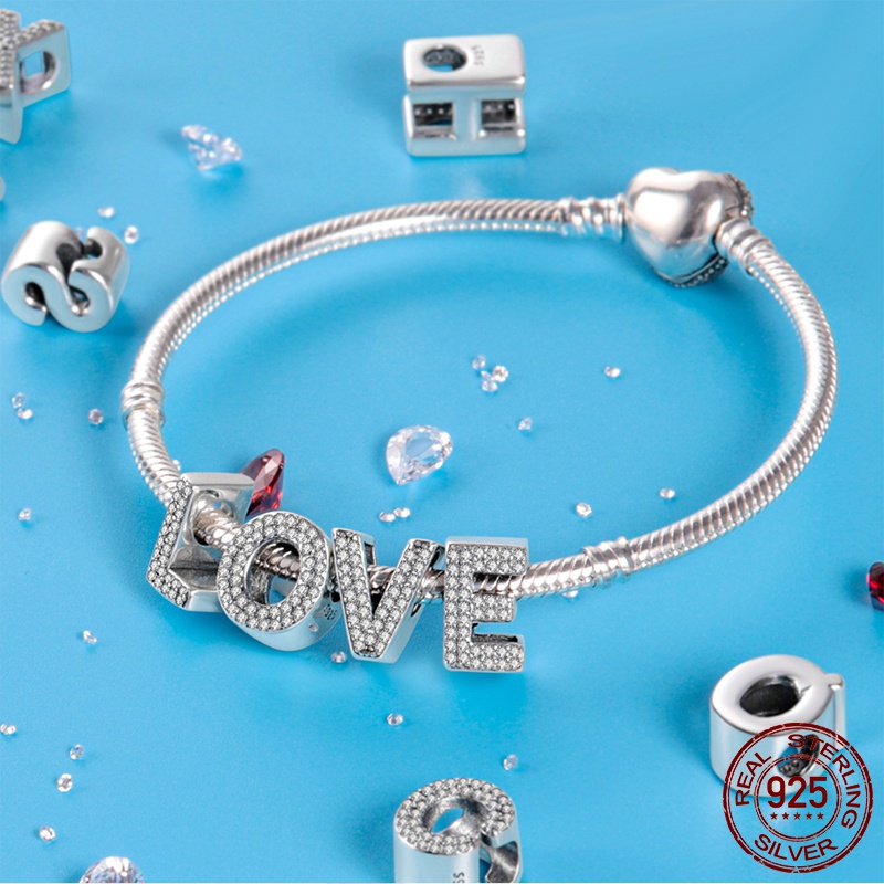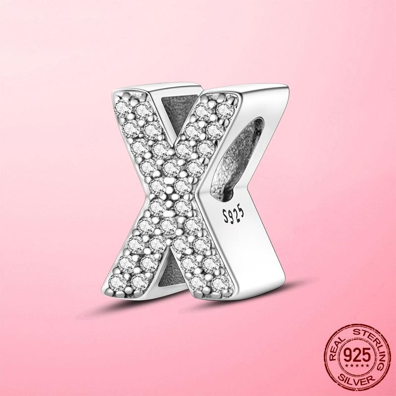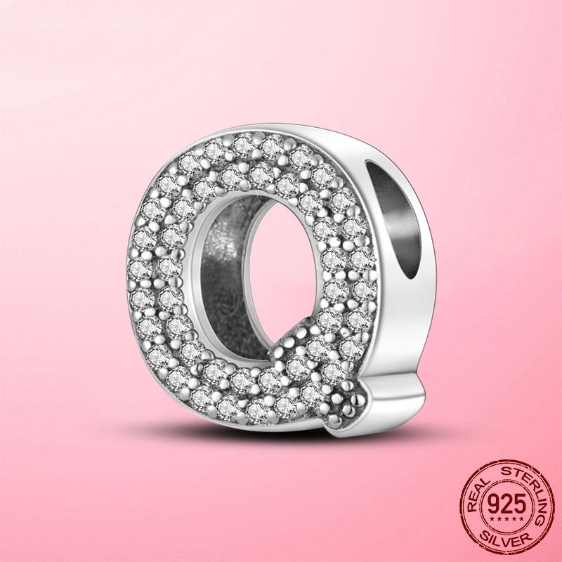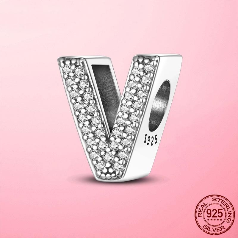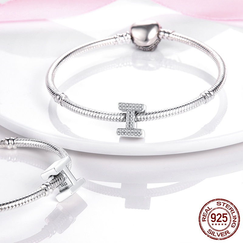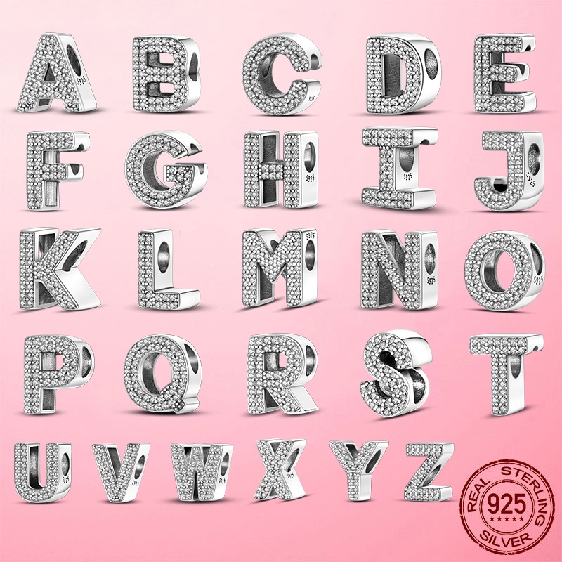 S925 Charme De Prata Esterlina A-Z 26 Cartas Em Inglês Adequadas Para Pulseira Charmosa Contas