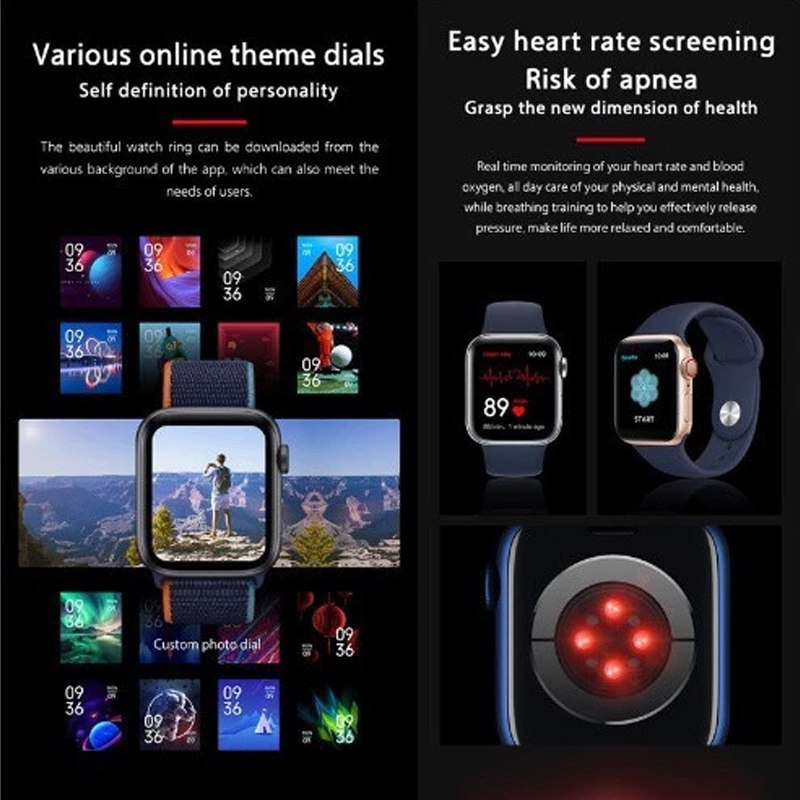 Novo Mini relógio inteligente 38mm 45mm carregamento sem fio Bluetooth chamada monitoramento de oxigênio no sangue monit