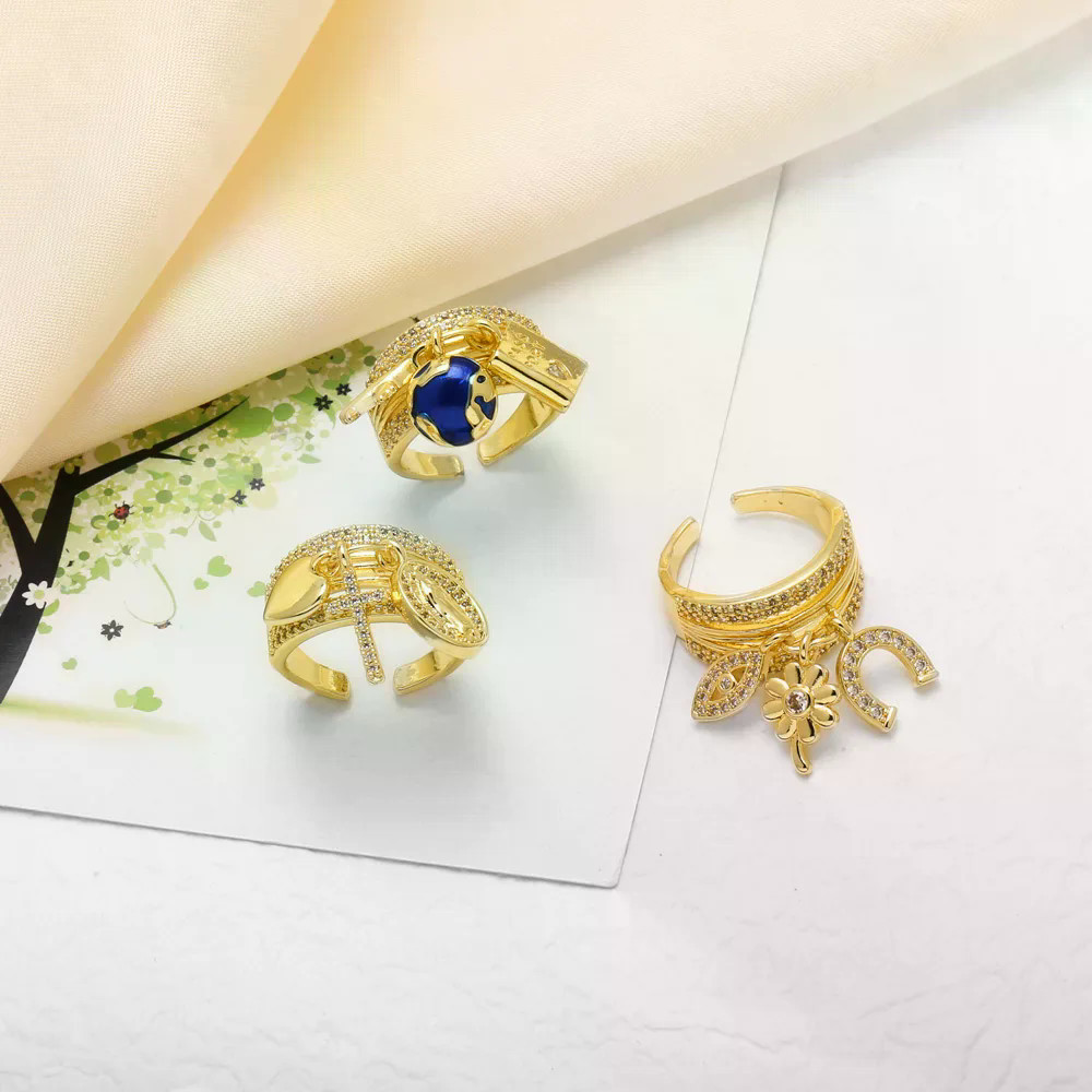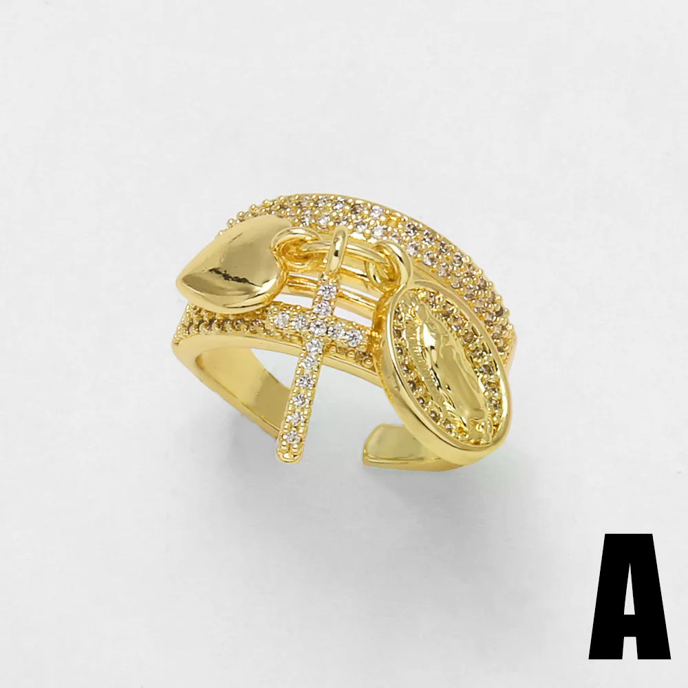 CZ Cristal Cruz Virgem Maria Declaração Anéis Cobre Passaporte Viagem Largos Jóias Femininas rigq74