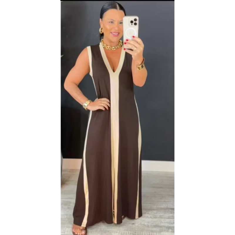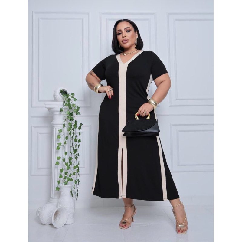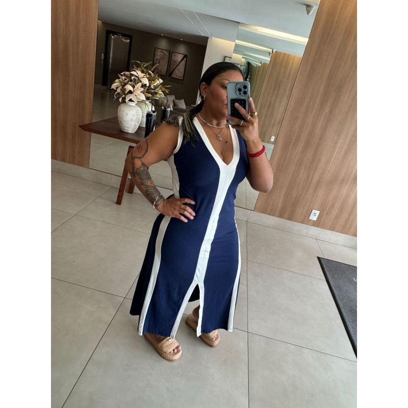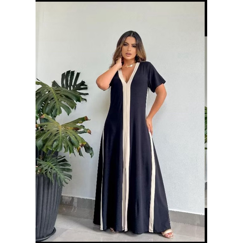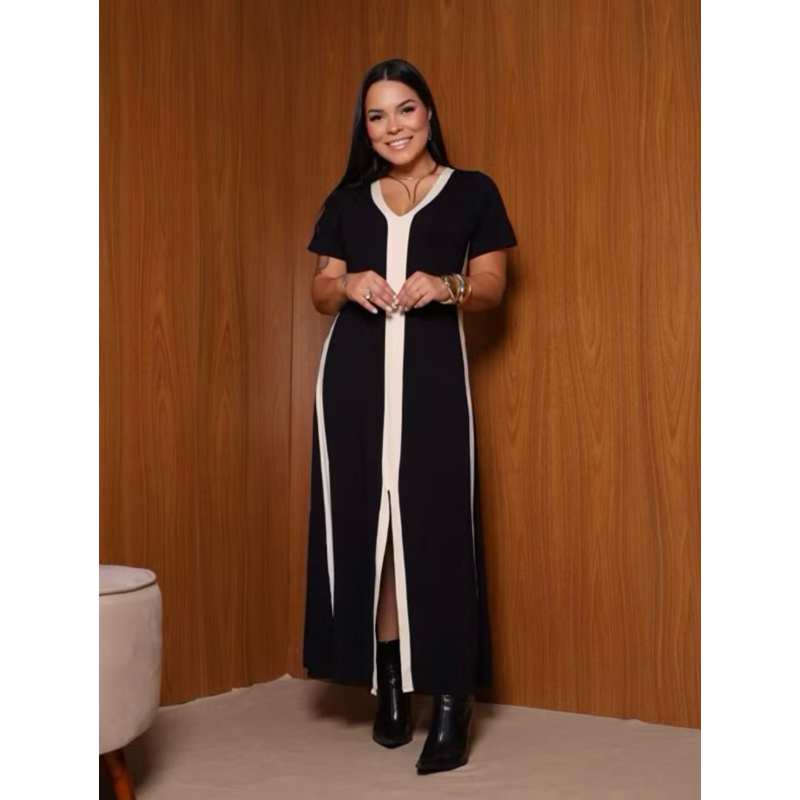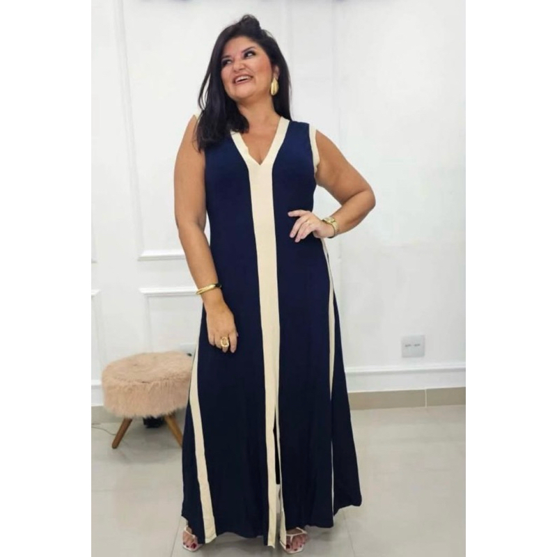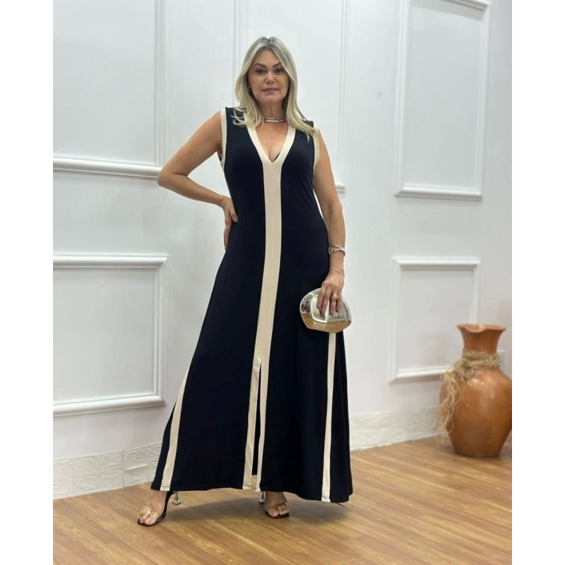 Vestido feminino Longo com Faixa Branca disponível com manga ou regata.M ao G1