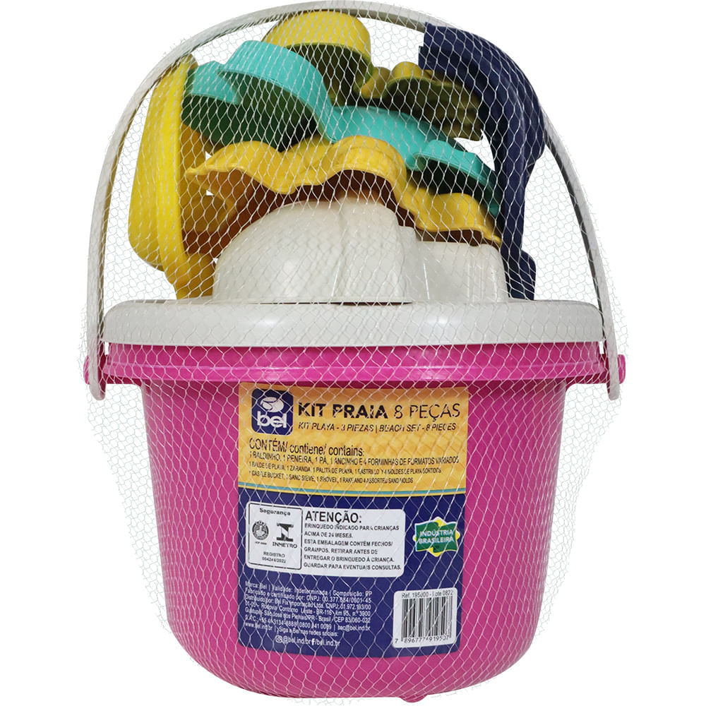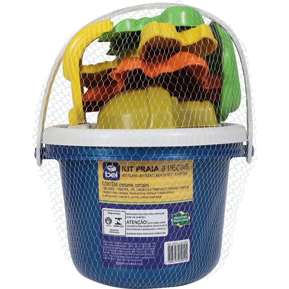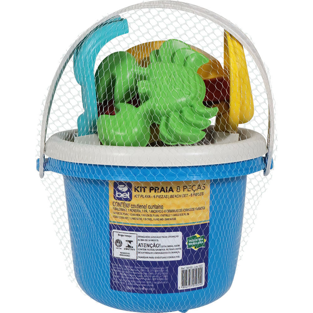 Kit Baldinho de Praia com 8 Peças Cores Sortidas Bel