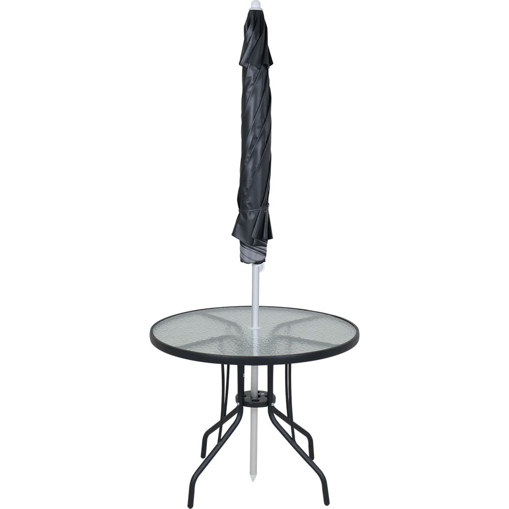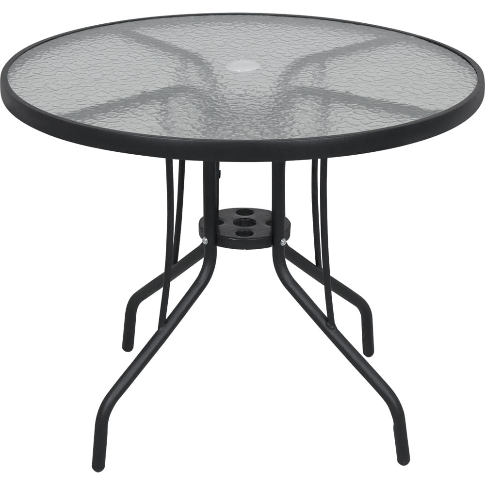 Mesa Redonda 90 X 90 cm em Alumínio com Tampo de Vidro Preta Bel