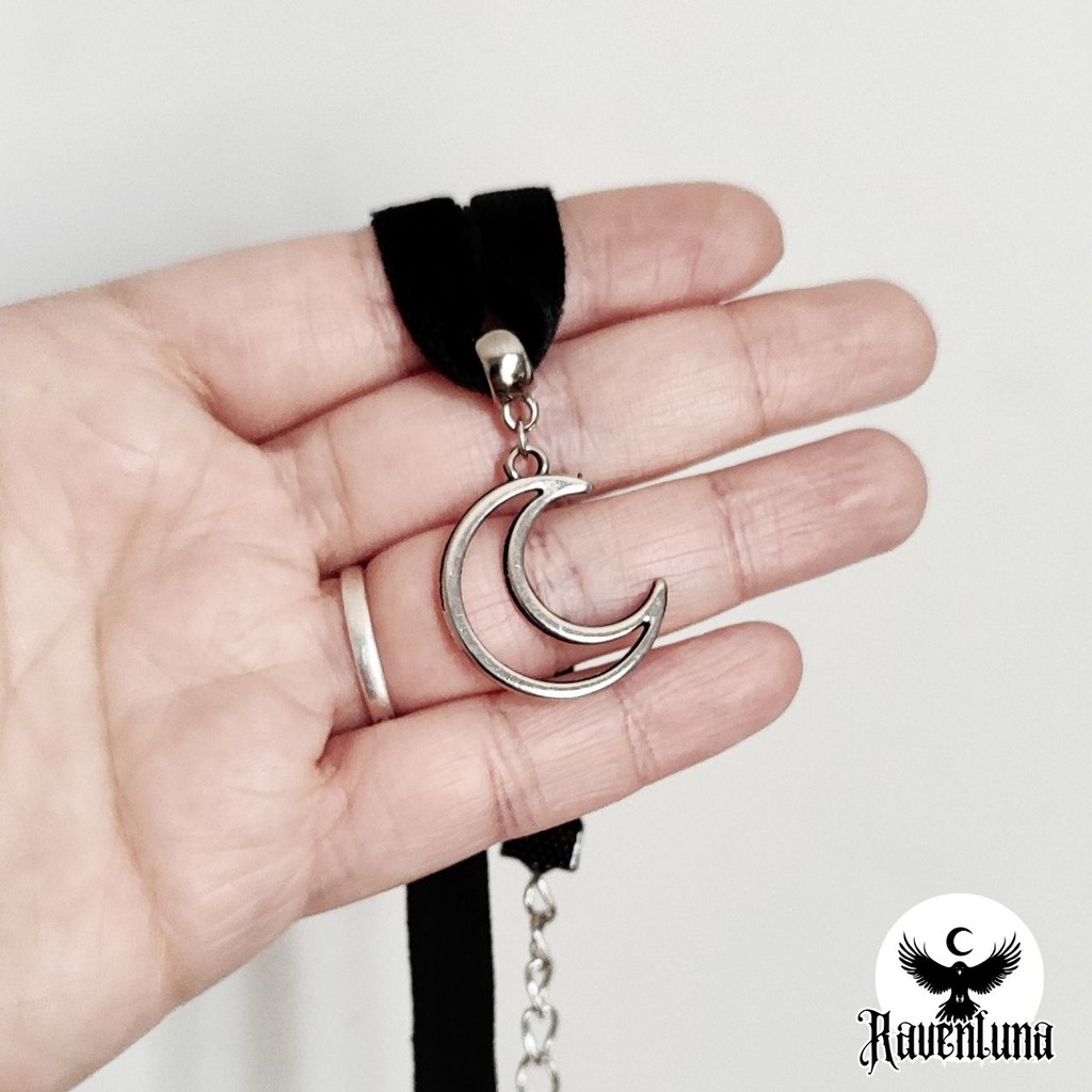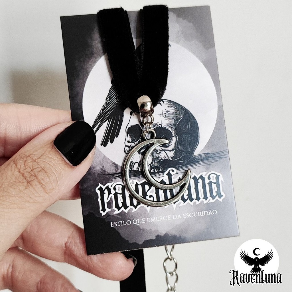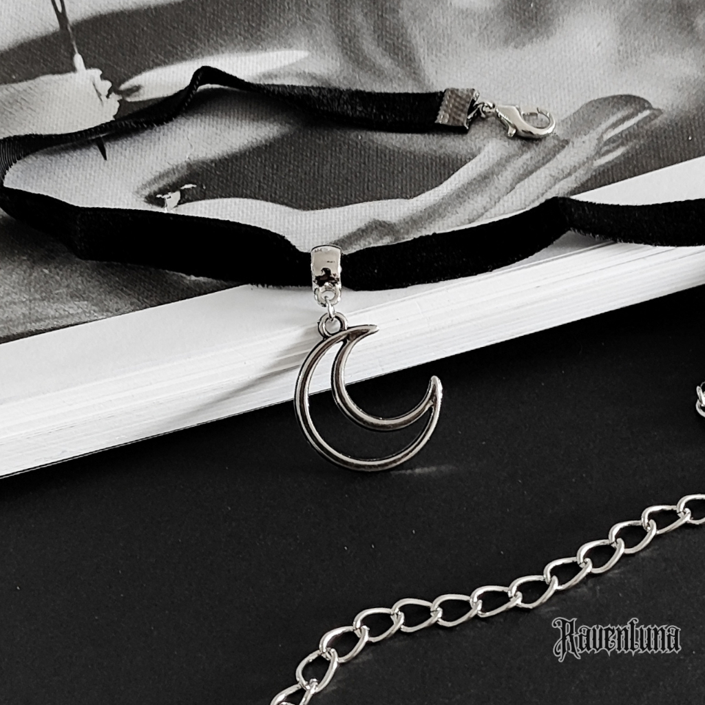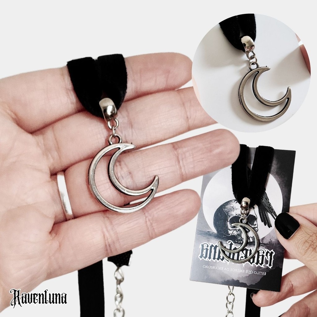 Choker Gargantilha pingente meia lua veludo preto