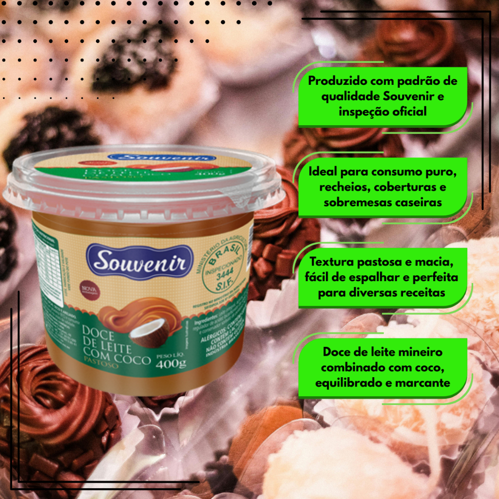 Doce de Leite Mineiro Souvenir - Tradicional Coco e Cacau Sem Amido - Cremoso Irresistível