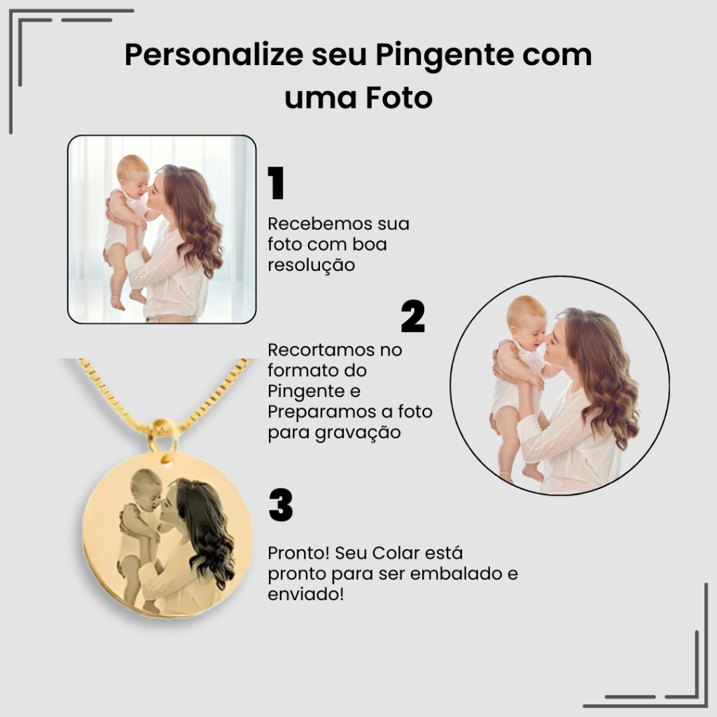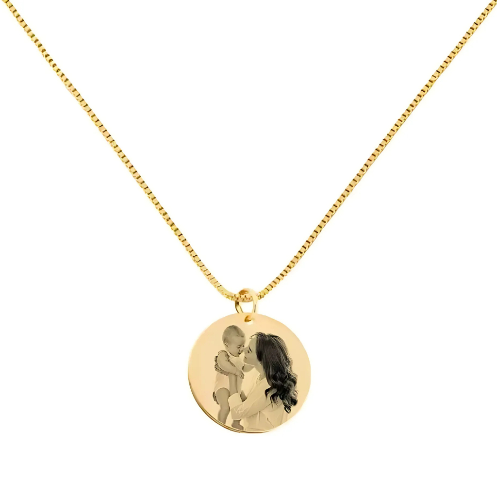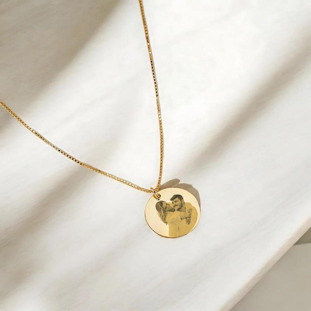 Colar cordão feminino pingente personalizado com foto gravação e nome banhado a ouro 18k Família