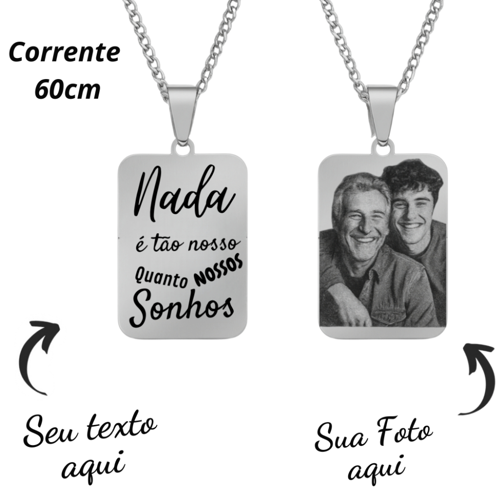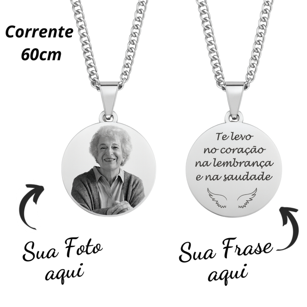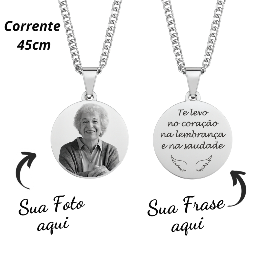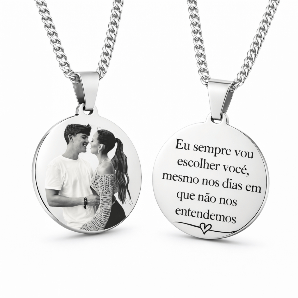 Colar medalha personalizada Foto gravação a laser Família Amor Avó Pai Mãe Namorado Casal