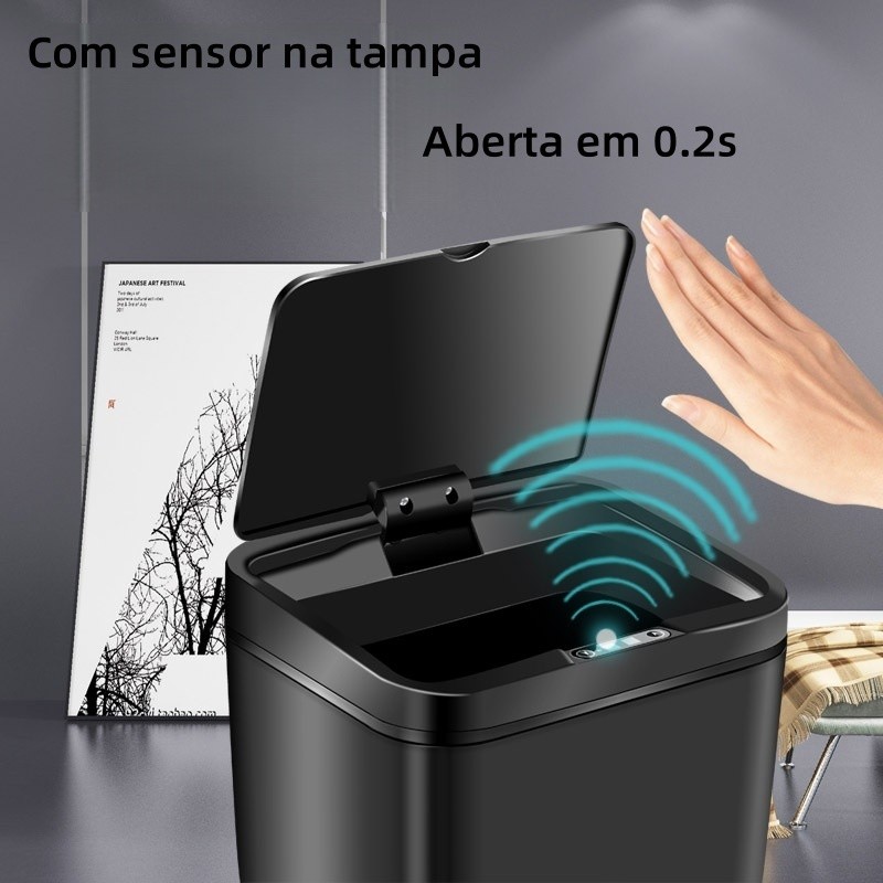 Lixeira Inteligente Capacidade 16L Recarregável Automático Com Sensor Na Tampa Para Sala Cozinha Escritório