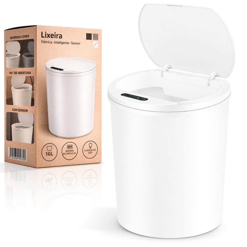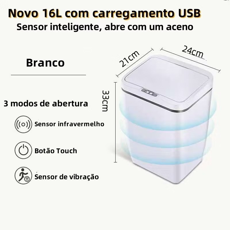 Lixeira Sensor Automática Inteligente de Banheiro Cozinha Escritório Capacidade 16 Litros