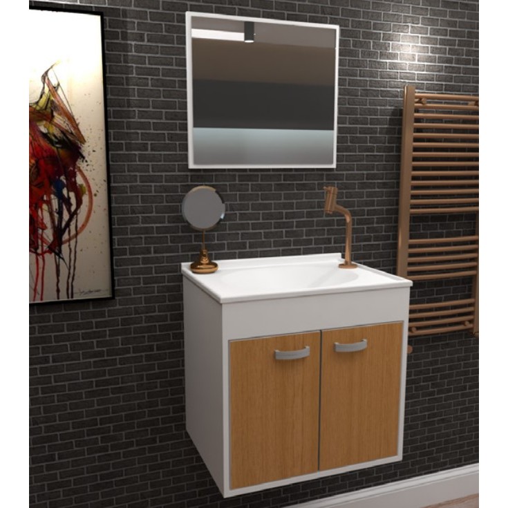 Gabinete Armário Para Banheiro Com Espelho Udine 45 Carvalho