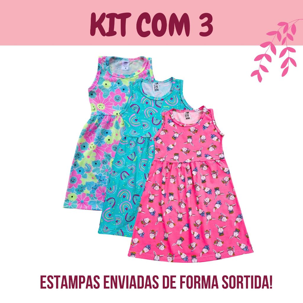 Vestido Infantil Manga Regata Colorido para Crianças