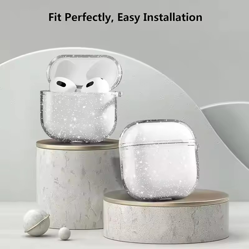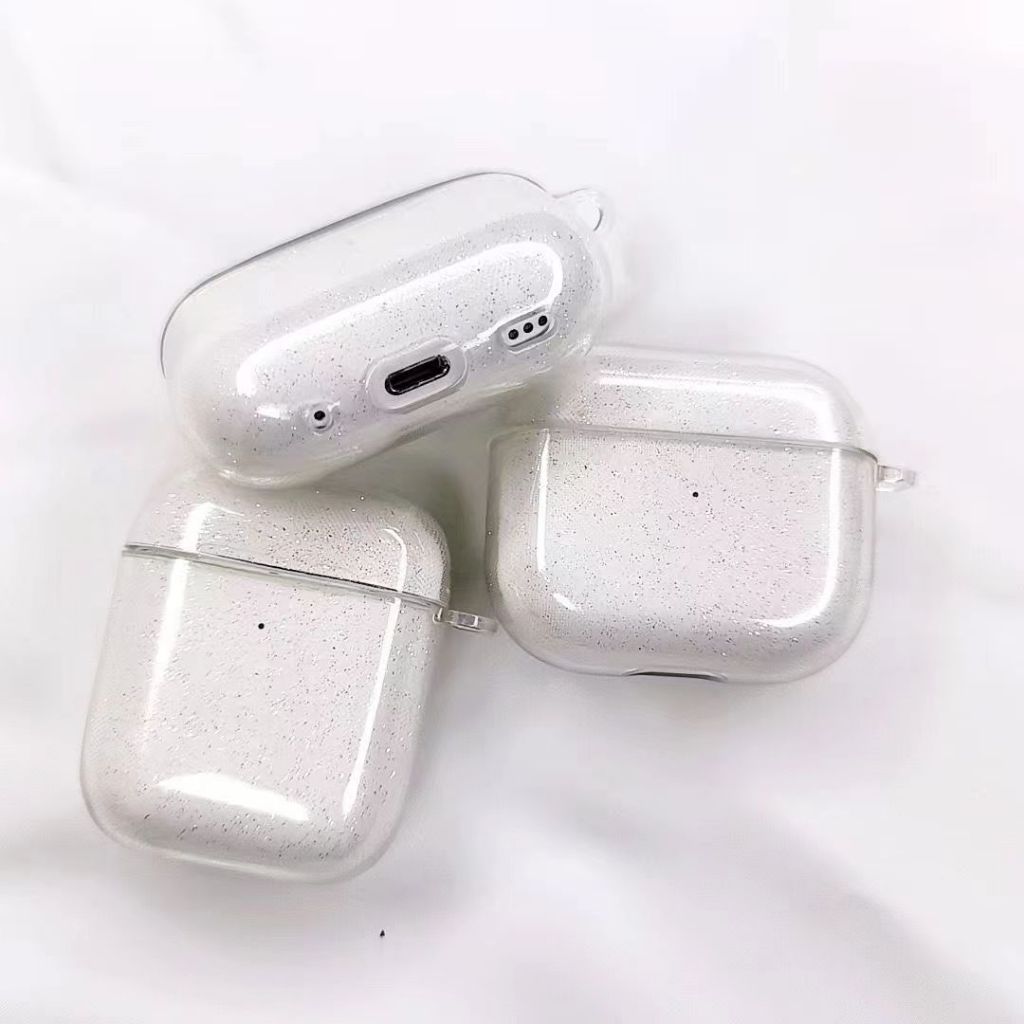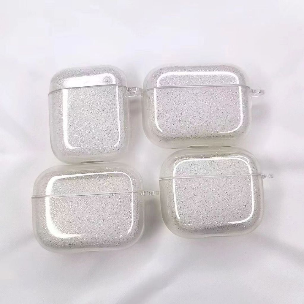Capa Transparente Com Glitter Para Airpods Pro/Pro2 TPU Silicone Sem Fio Fone De Ouvido Protetora 3/4