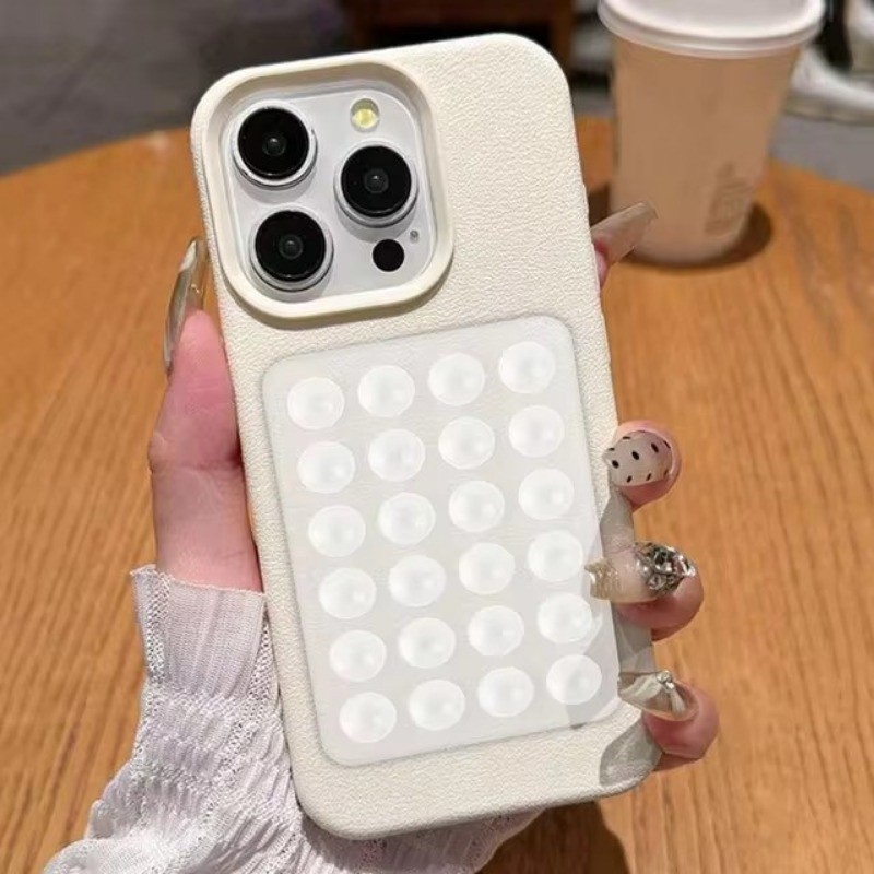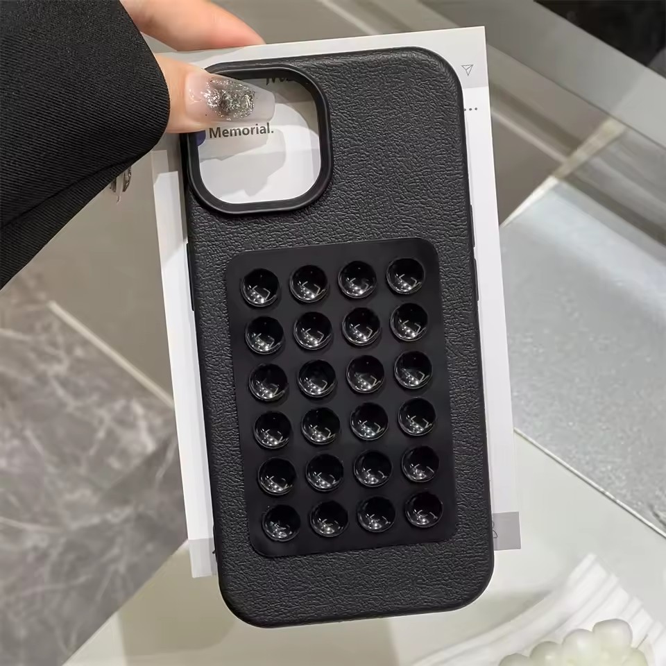 Ventosa 3D Suporte Litchi Padrão Caso De Telefone Para iPhone 16 15 Pro Max Plus 14 13 12 11 X XS XR Capa À Prova De Cho